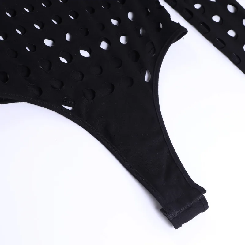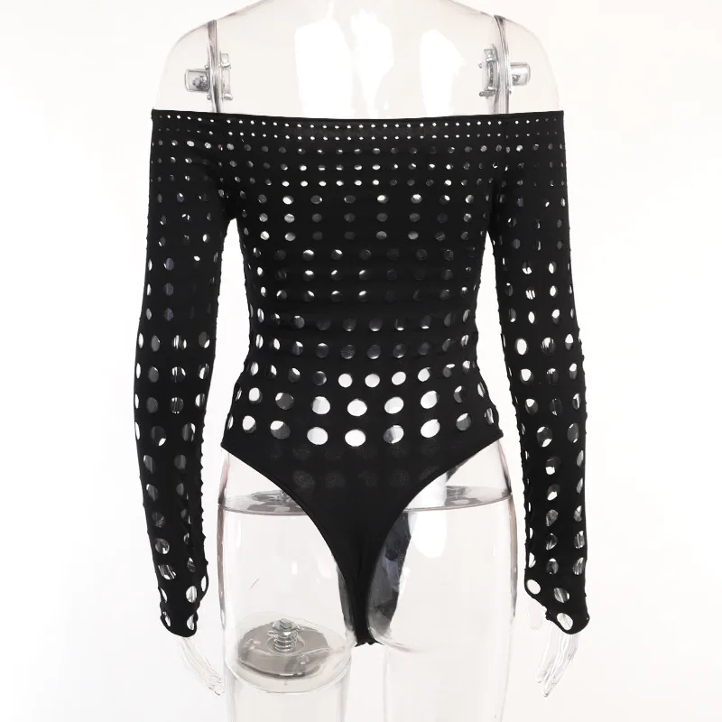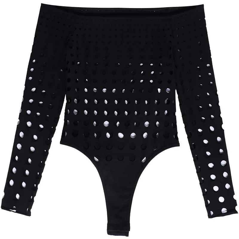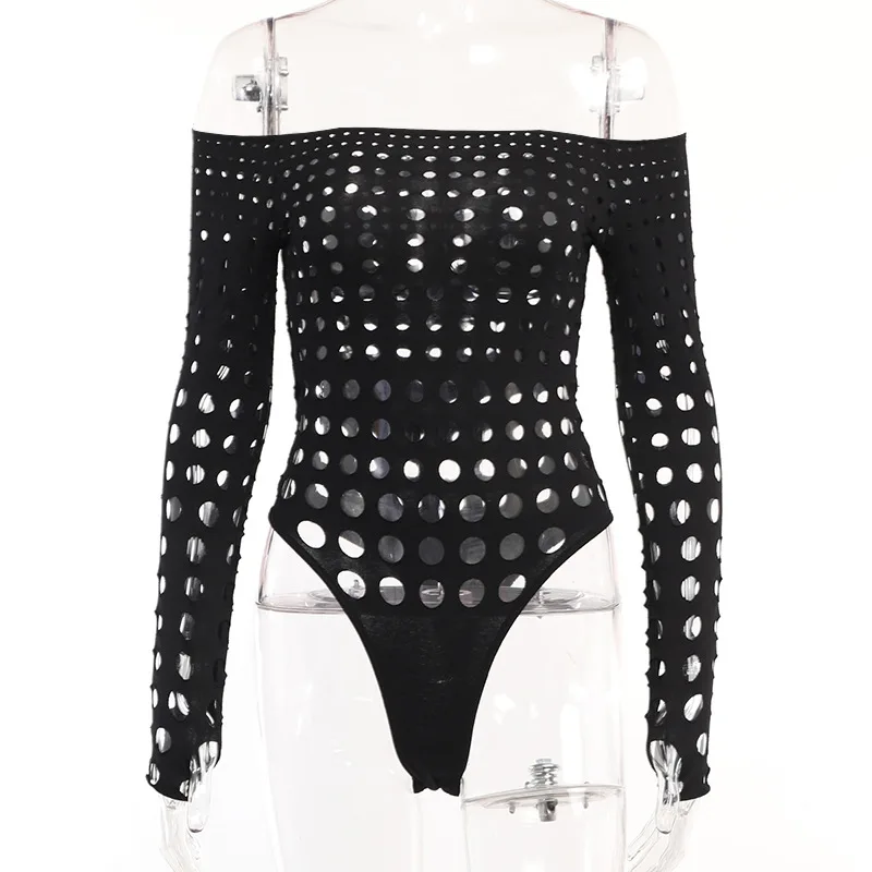Liu Ming Autumn Y2K Fashion 2024 Trending Women Sexy Hollow Out Bodysuit Black Long Sleeve Bodycon Bodysuits Romper Jumpsuit