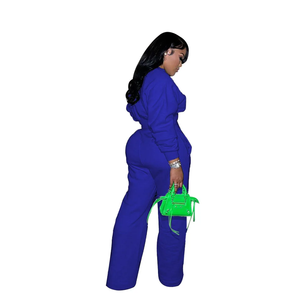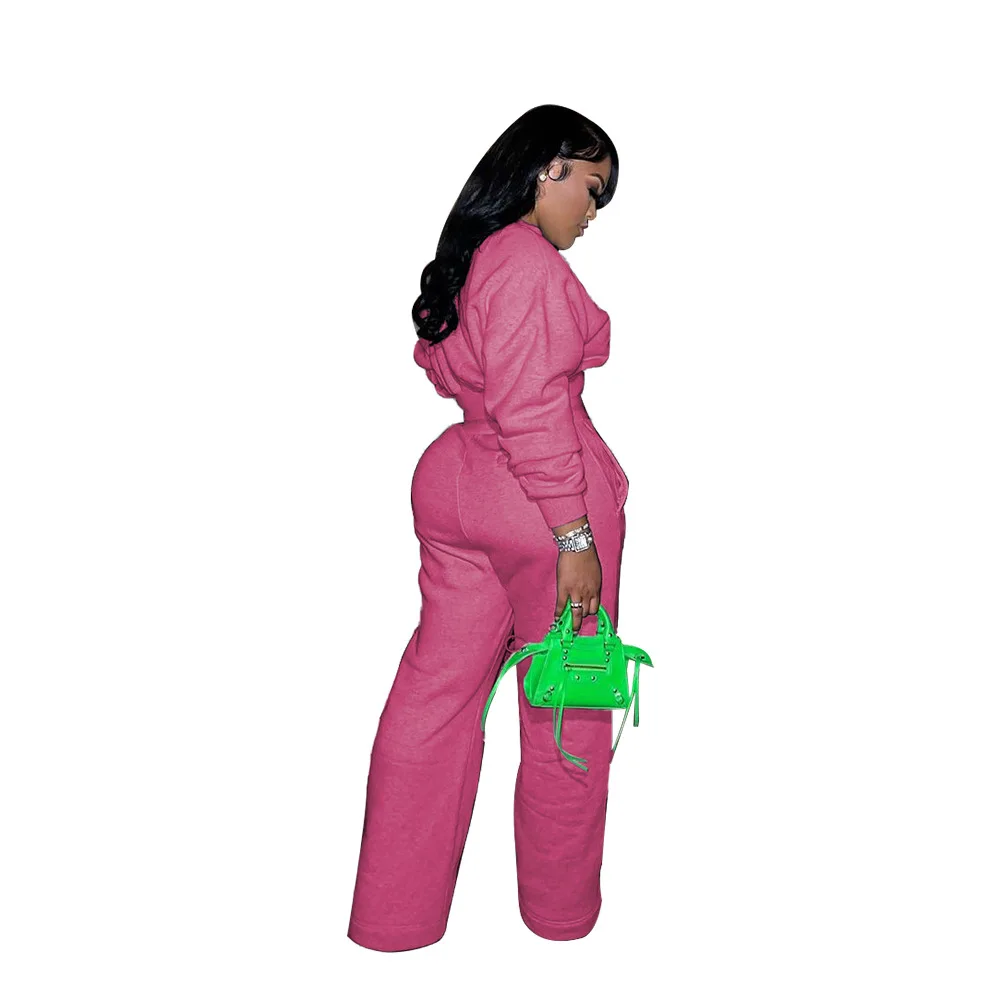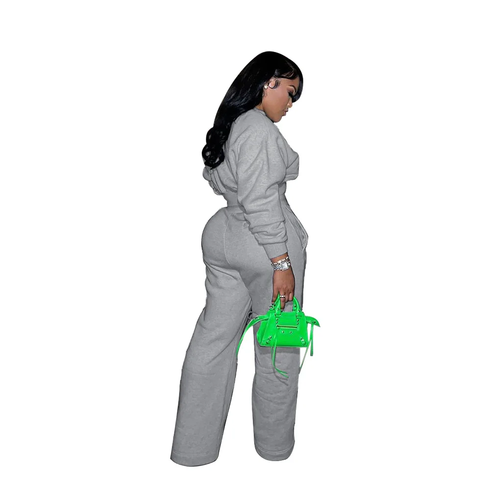 Liu Ming Fall Fashion Women Casual Zipper Long Sleeve Crop Tops Pants Two Piece Set