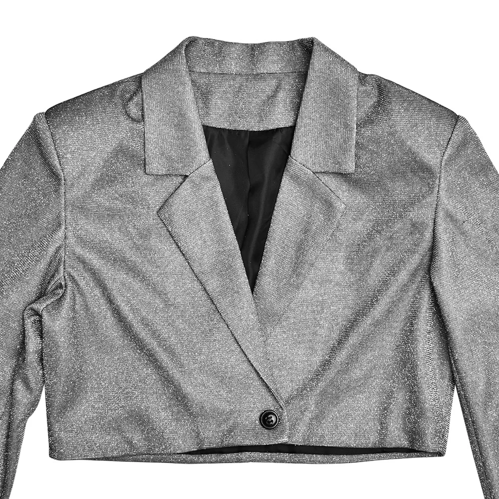 Liu Ming Fall Winter 2024 New Products Women Club Night Outfits Long Sleeve Glitter Sparkly Blazer And Slit Mini Skirt Set