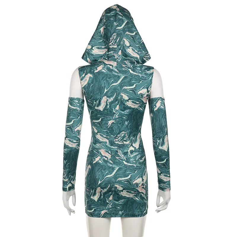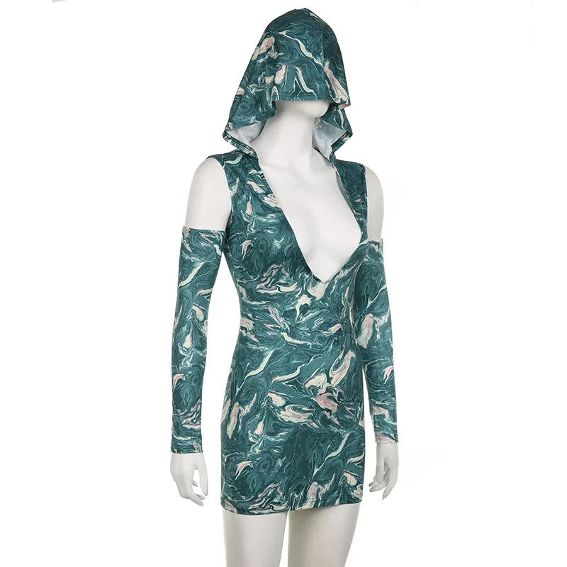 Liu Ming Fall Women Fashion 2024 New Products Sexy Tie Dye Printed Deep V Neck Nightclub Slim Bodycon Mini Dress