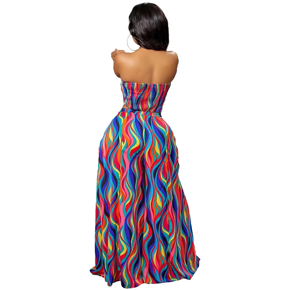 Liu Ming Fashion Summer 2023 Women Casual 2 Piece Set Strapless Top Printed Wide Leg Pants Suit