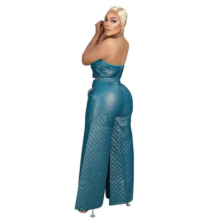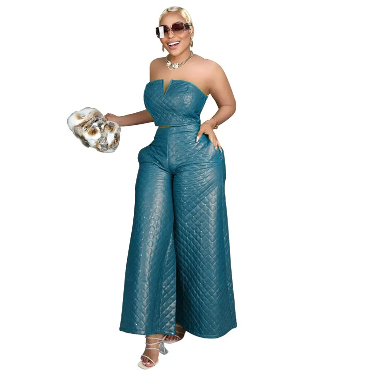 Liu Ming Fashion Wholesale 2024 Women Two Piece Outfits Solid Color Strapless Tank Tops Wide Leg Pants Casual Set