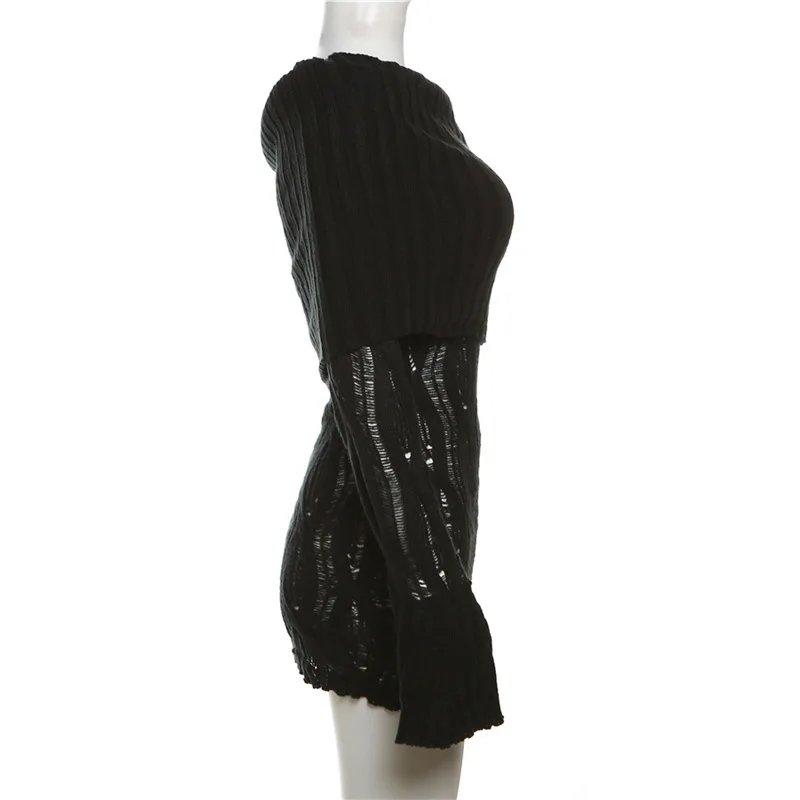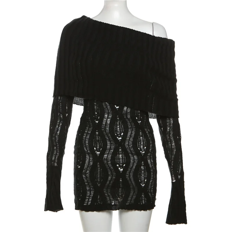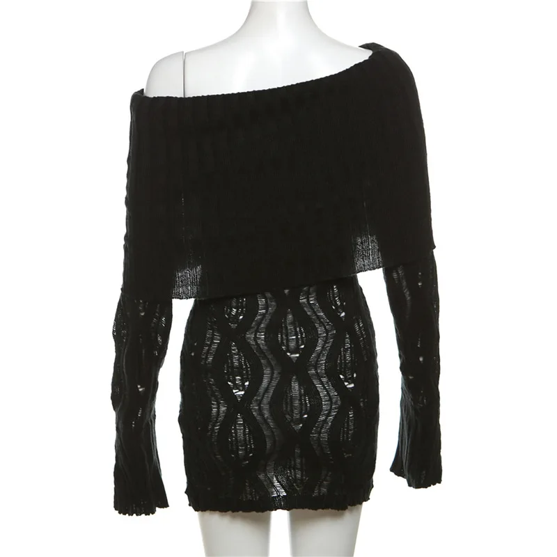 Liu Ming Hot Selling Streetwear 2024 Women Sexy Off Shoulder Long Sleeve Knitted Patchwork Midnight Party Slim Mini Dresses