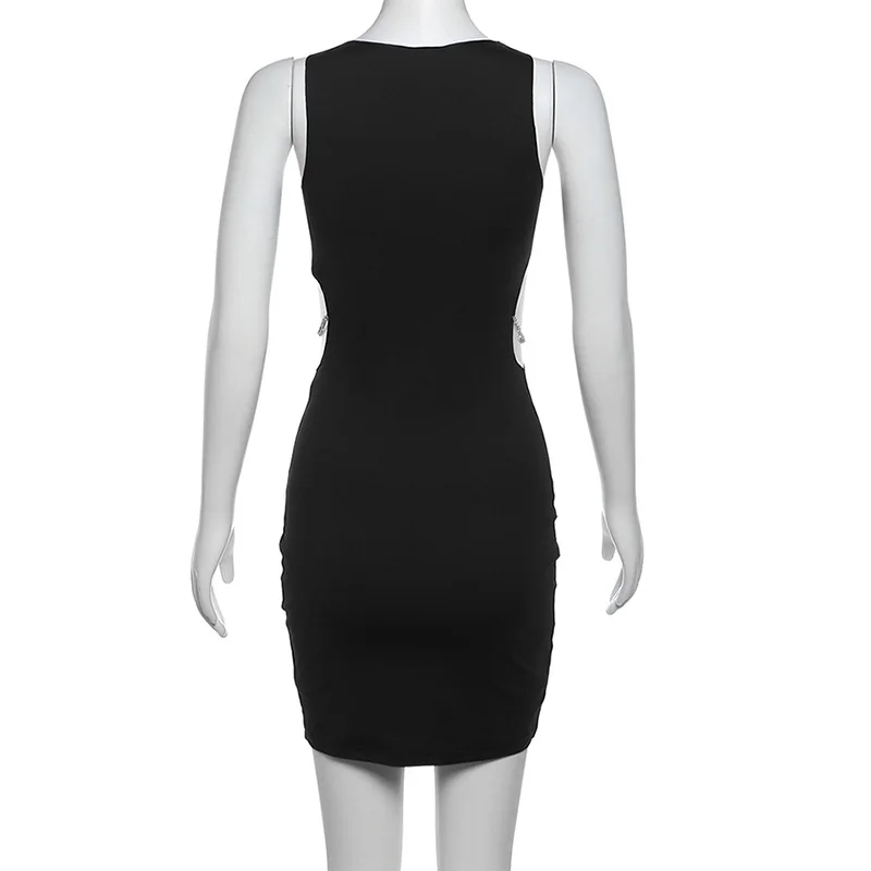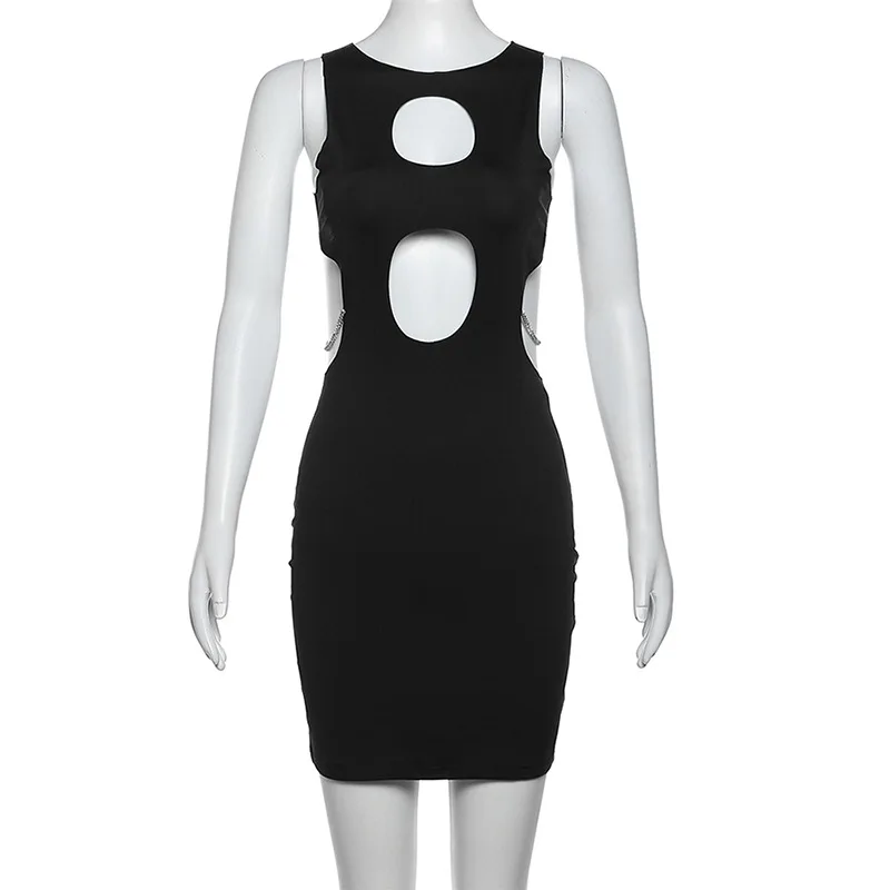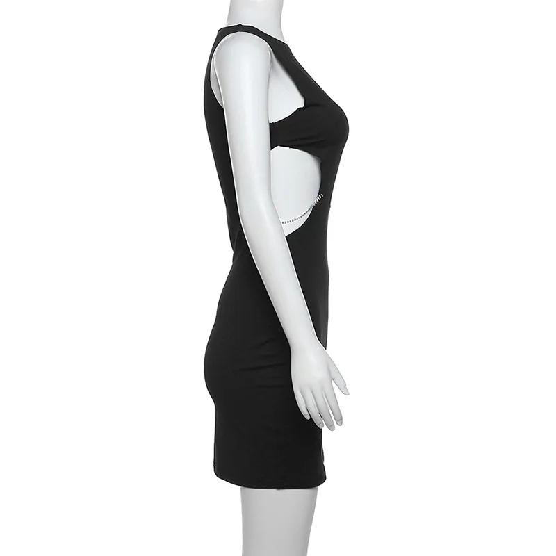 Liu Ming Hot Trending Products 2024 Women Clothes Sexy Cut Out Rhinestone Chain Club Outfits Elegant Boddycon Mini Dress