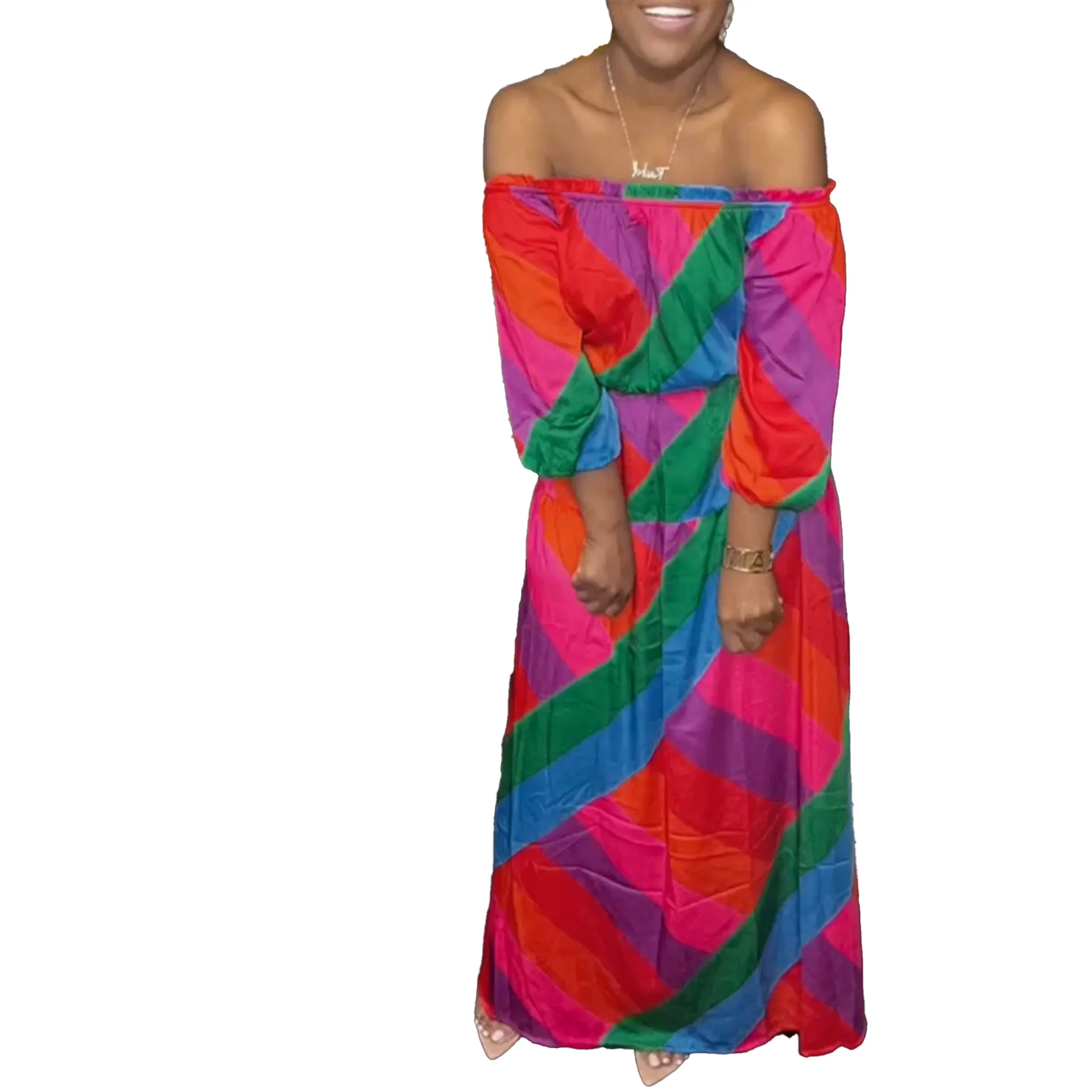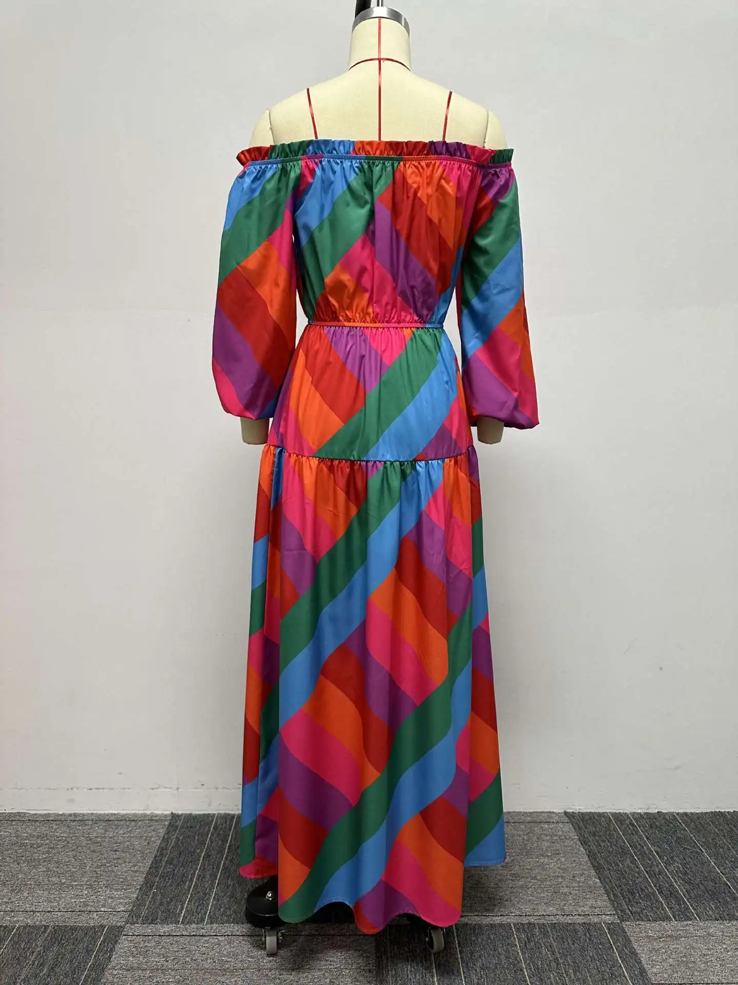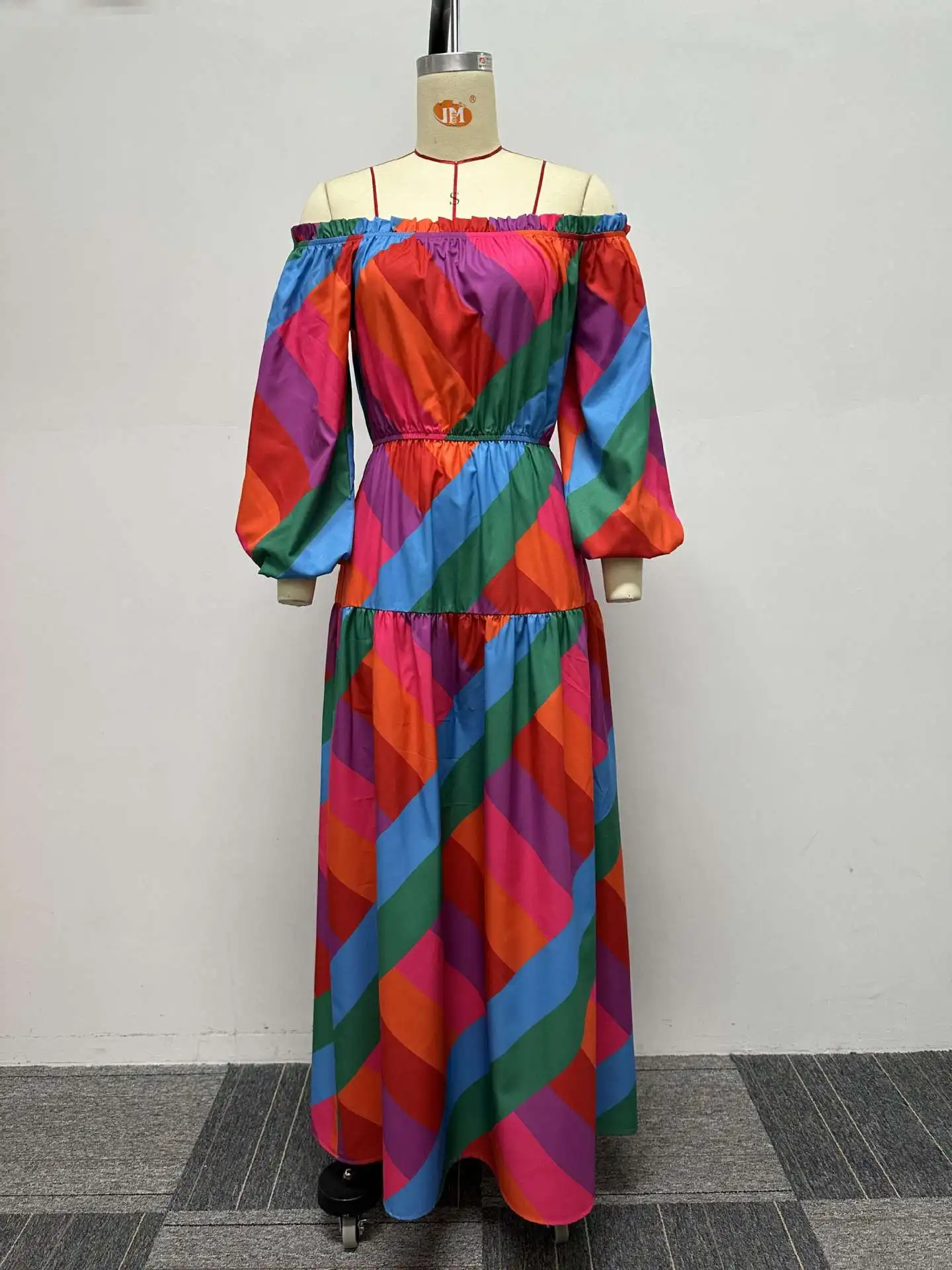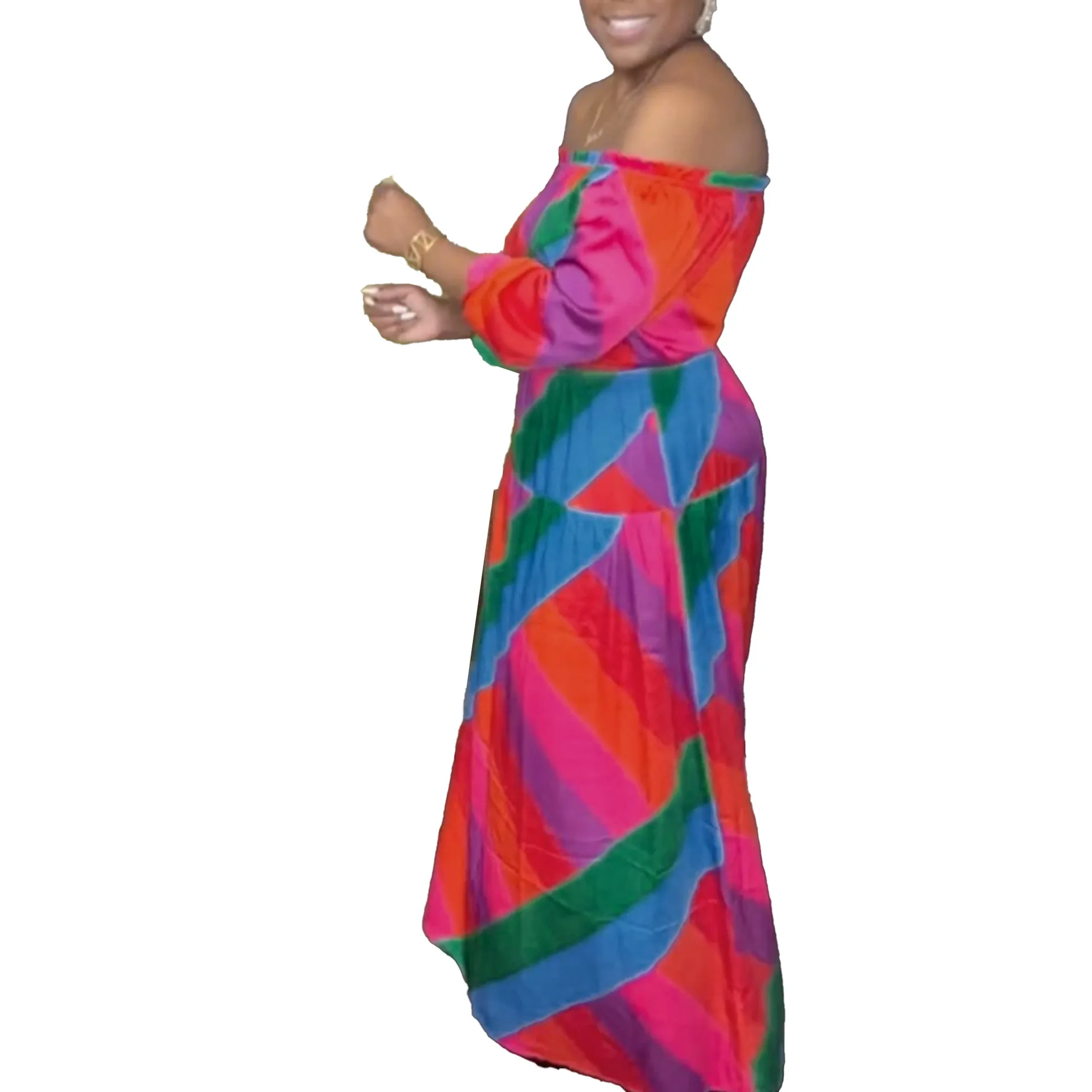 Liu Ming New Arrivals Autumn 2024 Trends Women Sexy Off Shoulder Long Sleeve Printed Maxi Dress