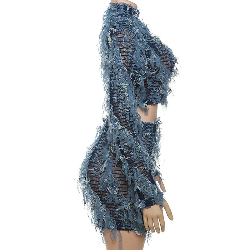 Liu Ming New Wholesale Y2K 2024 Women Sexy Two Pieces Sets Tassels Long Sleeve Short Tops Mini Hip Skirt Suit