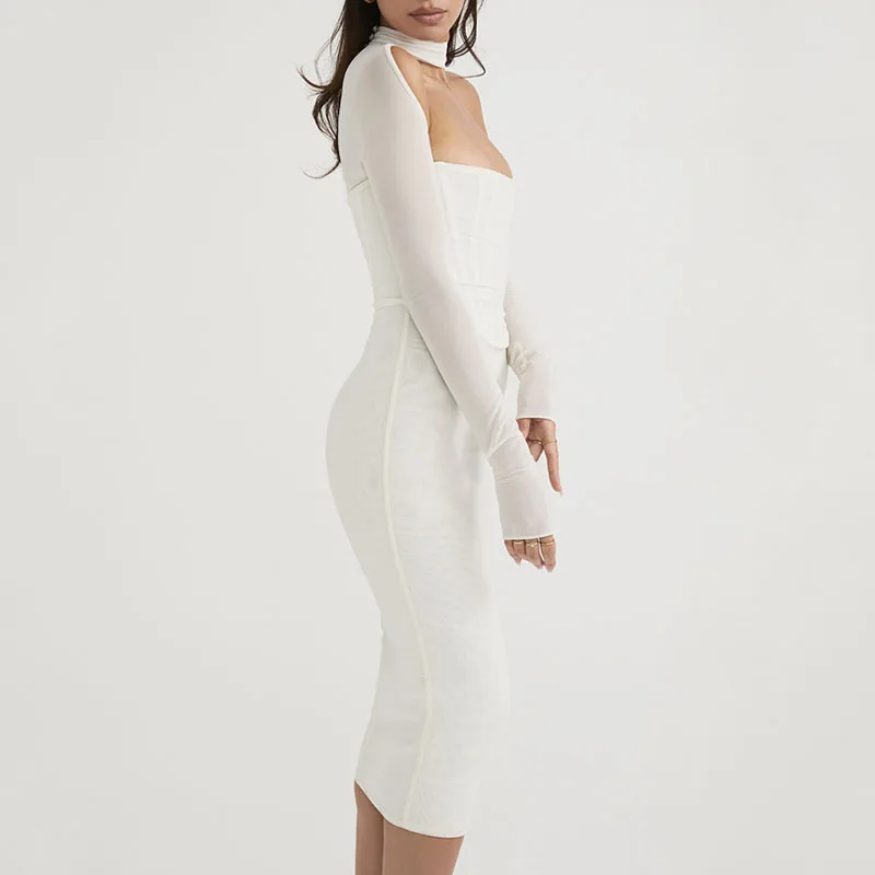 Liu Ming Summer Y2k Women Long Sleeve Corset Sexy Party Elegant Club Midi Dress