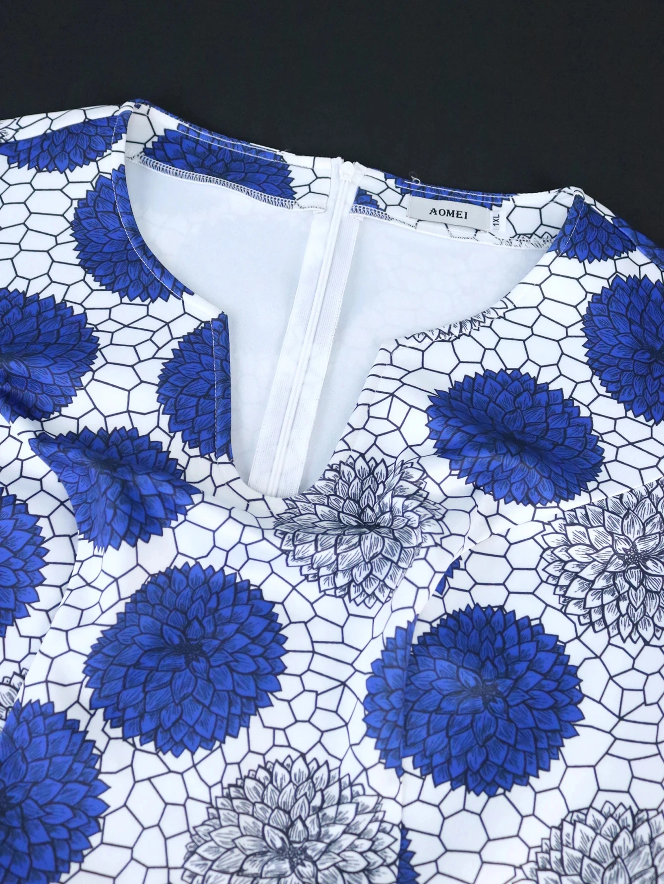 Producrt Name:Long Flare Sleeves Autumn Maxi Print Large Size Women Cocktail Dresses