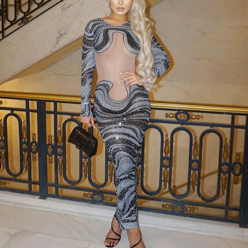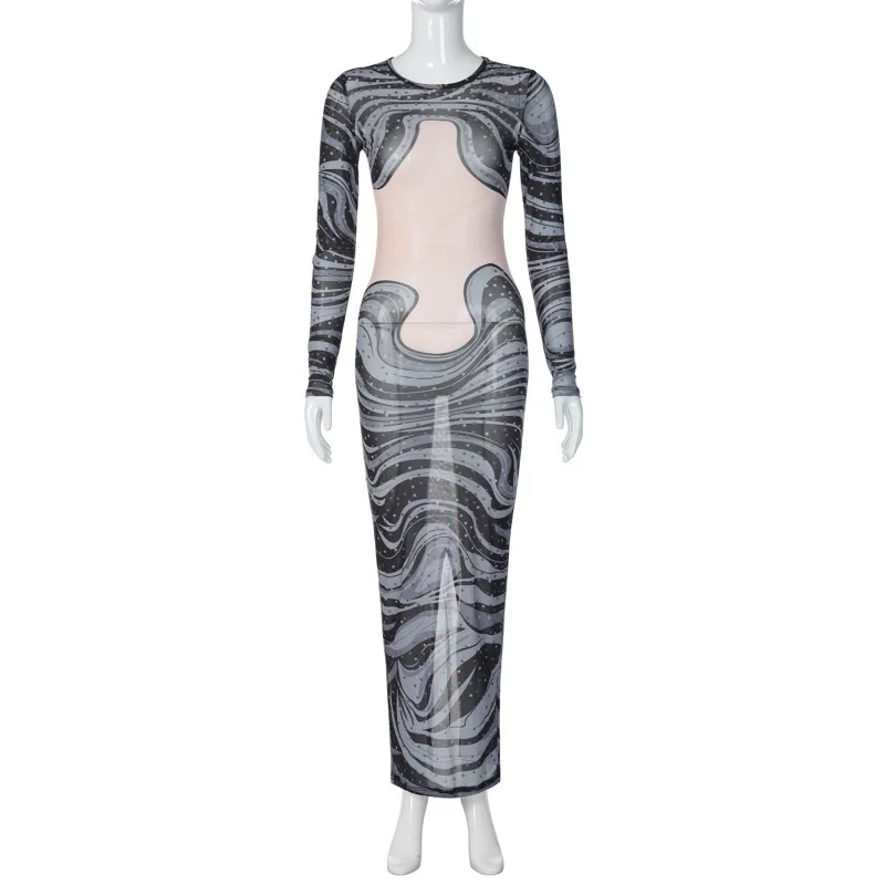 long maxi dress hollow sexy summer vocation Striped mesh dress women