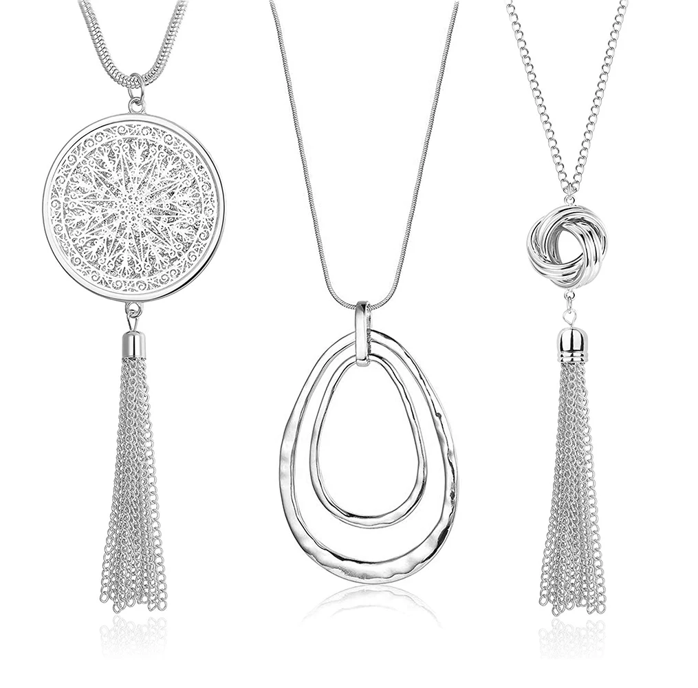 Long Pendant Necklaces For Women Knot Disk Circle Tassel Pendant Statement Sweater Necklace Set Gold Silver Chain Girl Jewelry