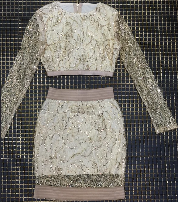 Long Sleeve Elegant Crop Tops Two Piece Skirt Set Sequined Women'S Skirts Spring Casual Dresses