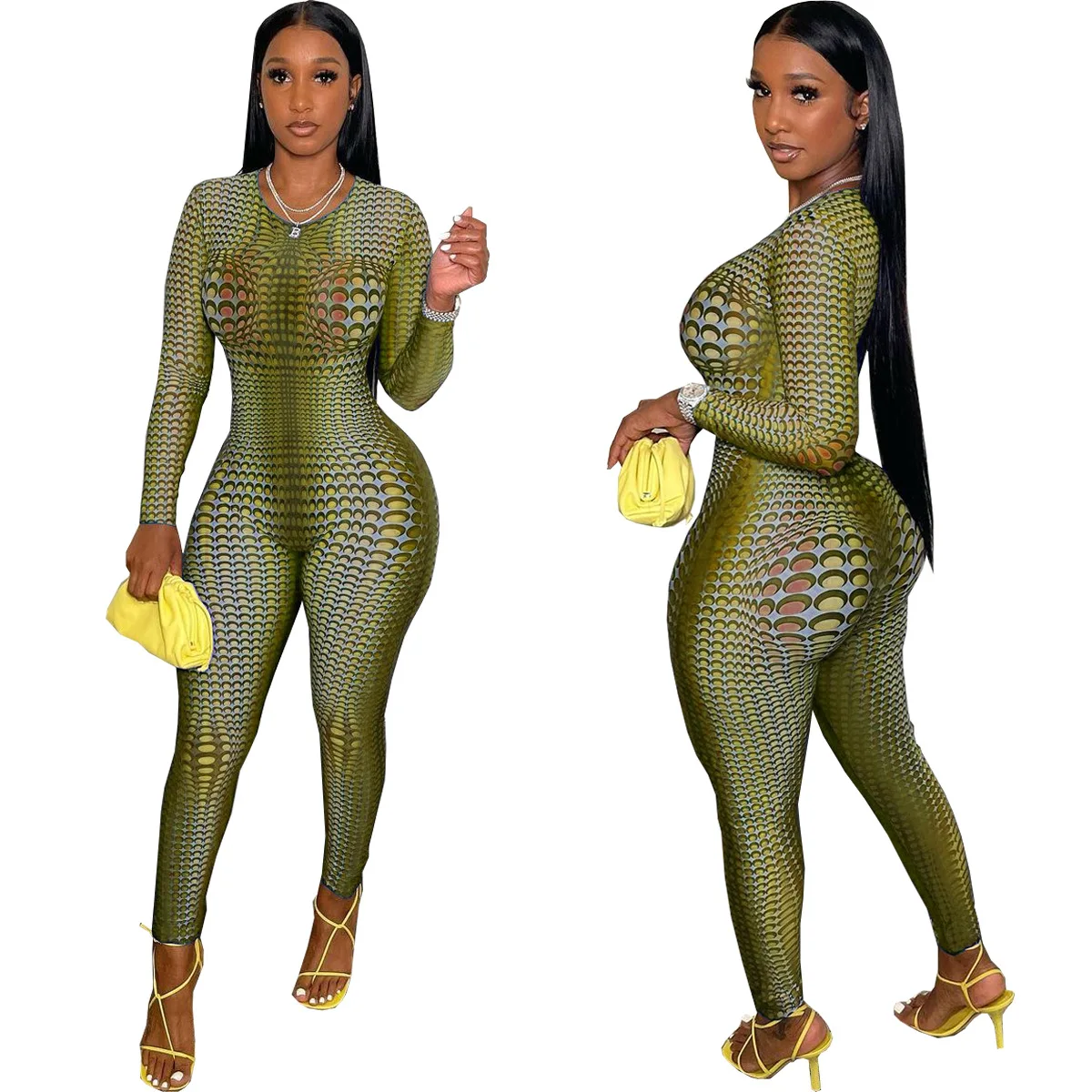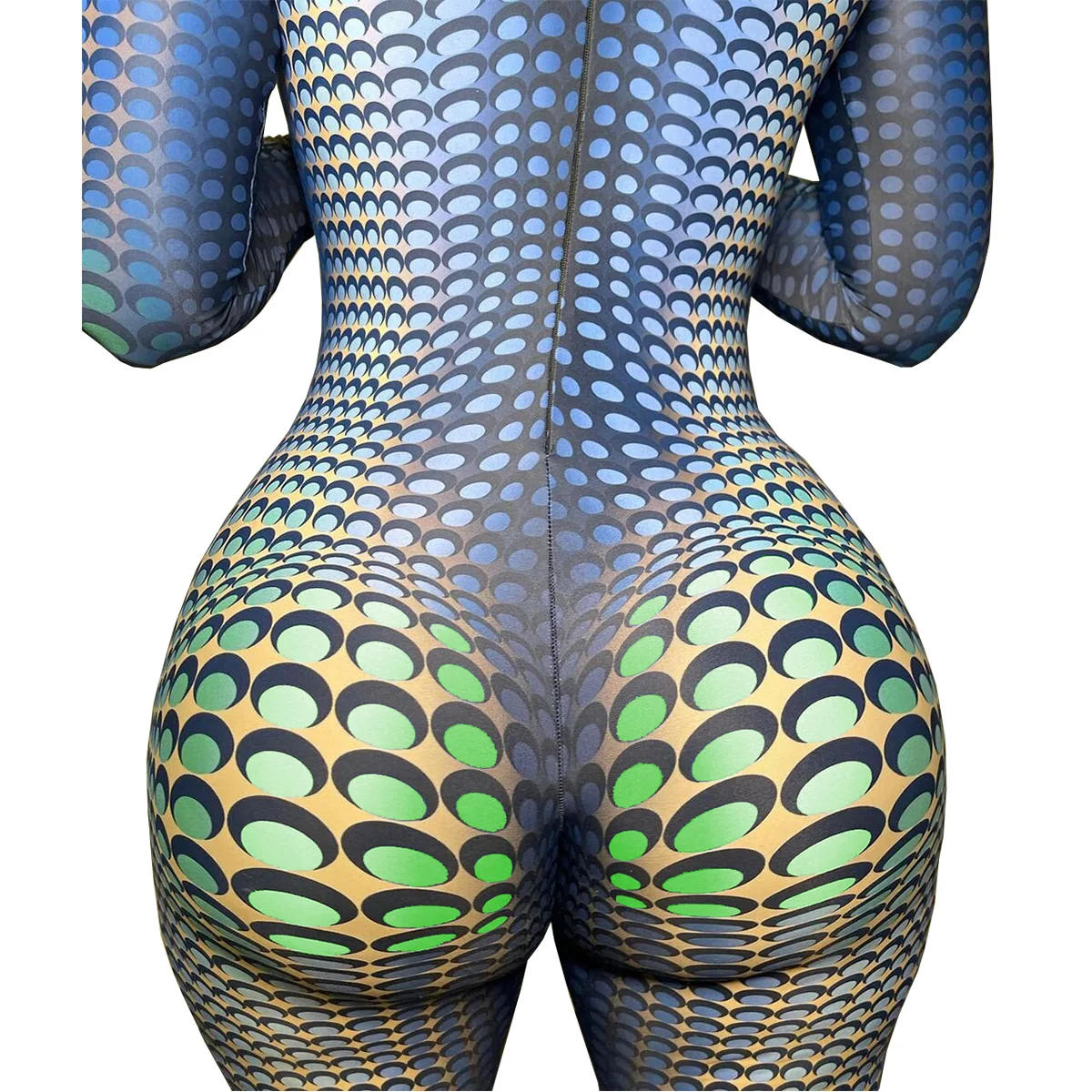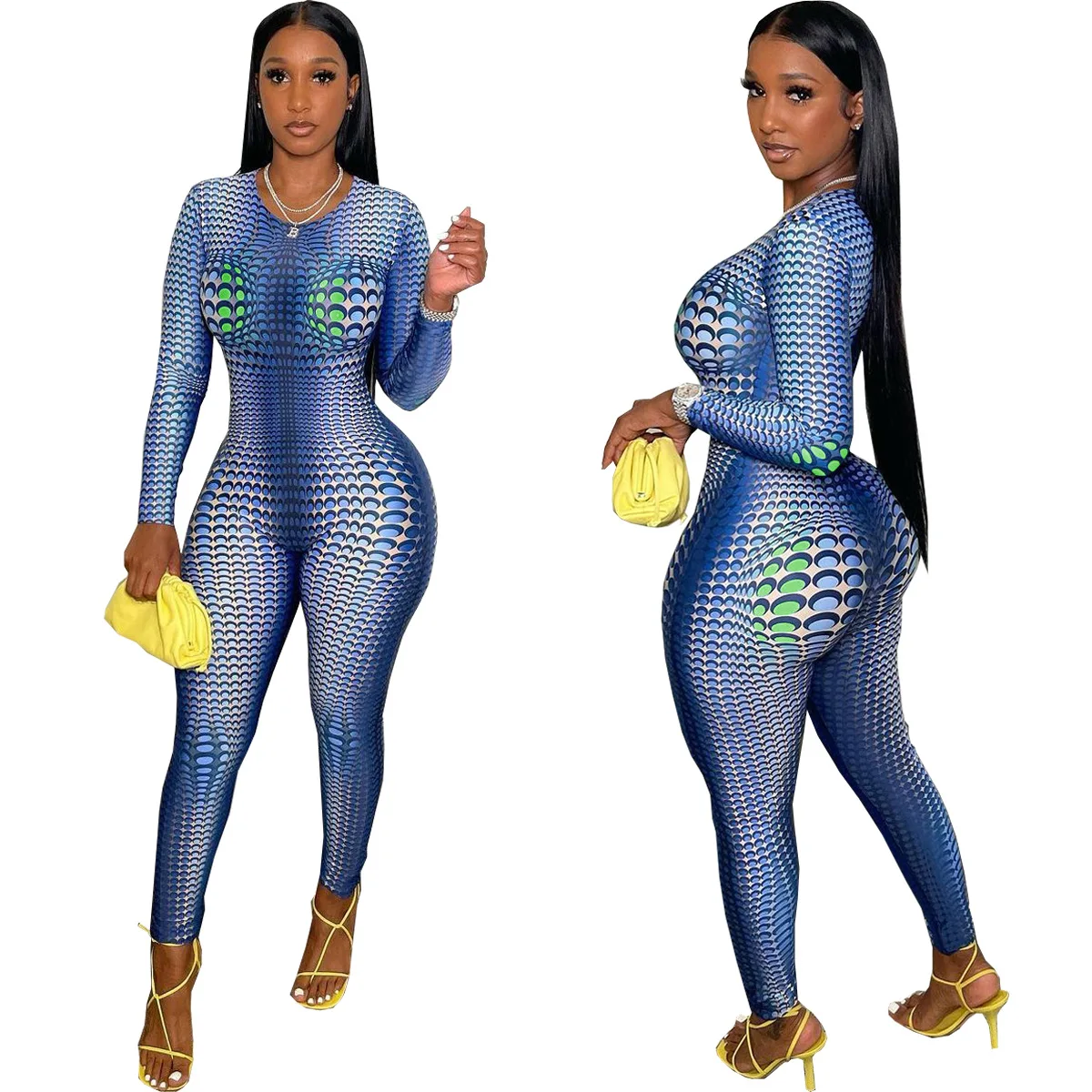 Long Sleeve Fall Women Jumpsuit Bodysuits Fitted Slim Bodycon Print Jumpsuit Workout Women One Piece Sportswear Zip Jumpsuits