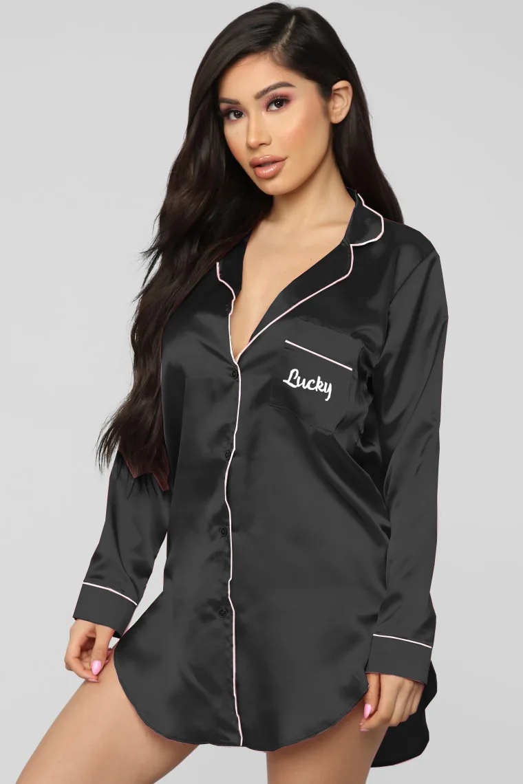 long sleeve shirt lounge wear silk pajamas night wear pyjamas women sleepwear nightgown