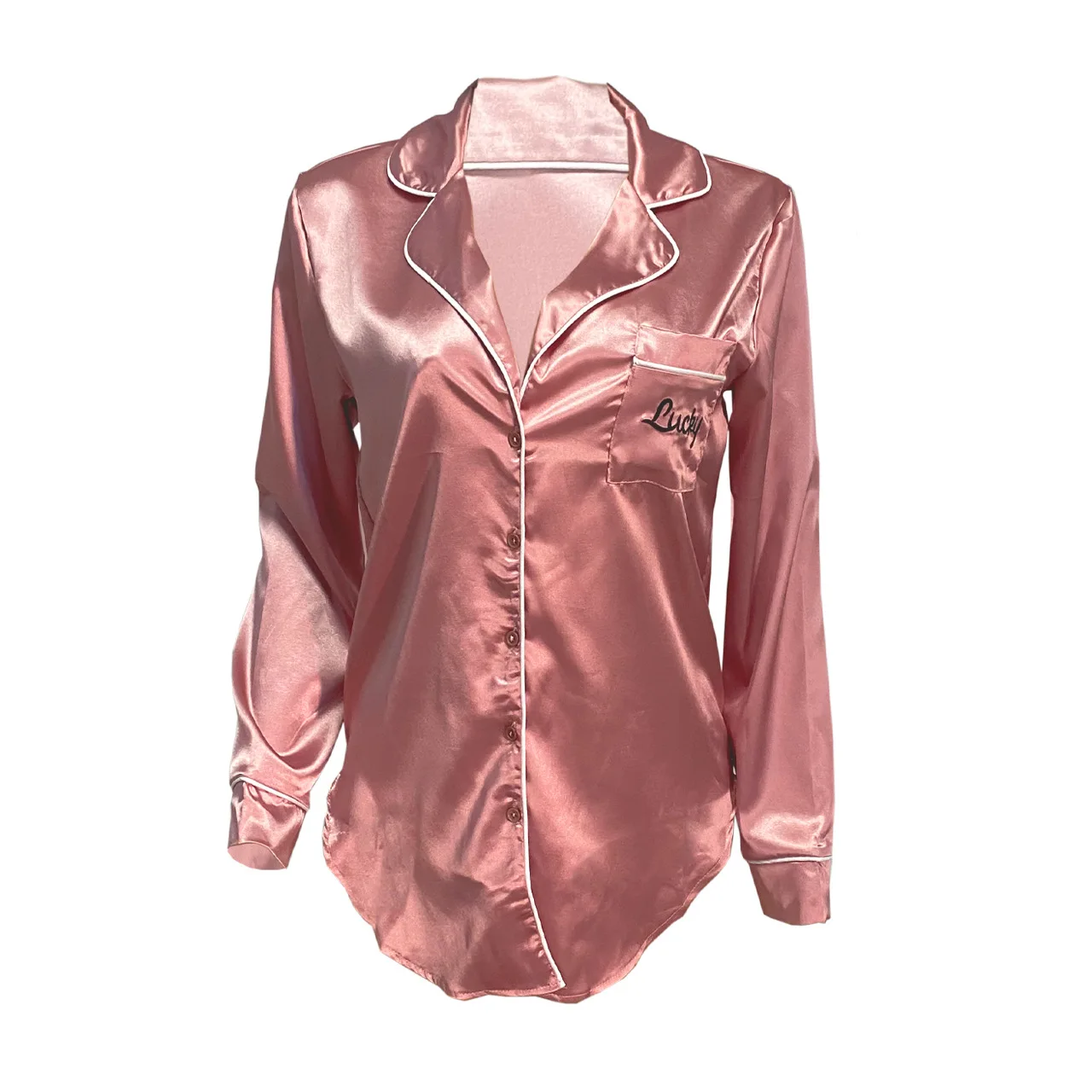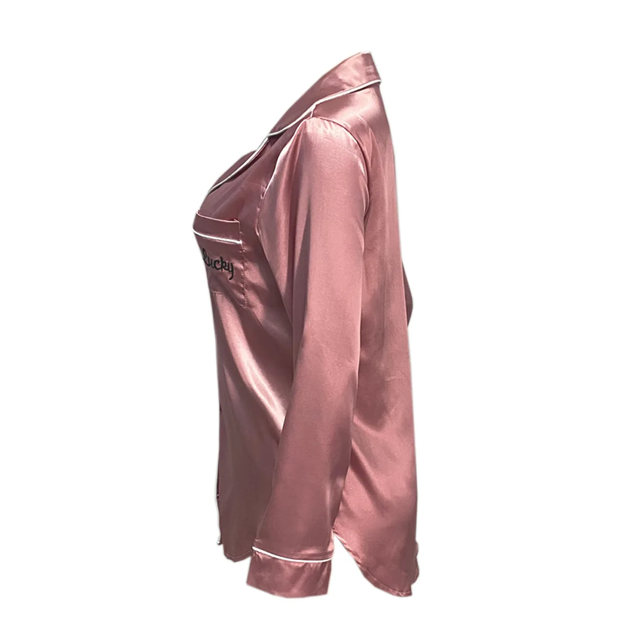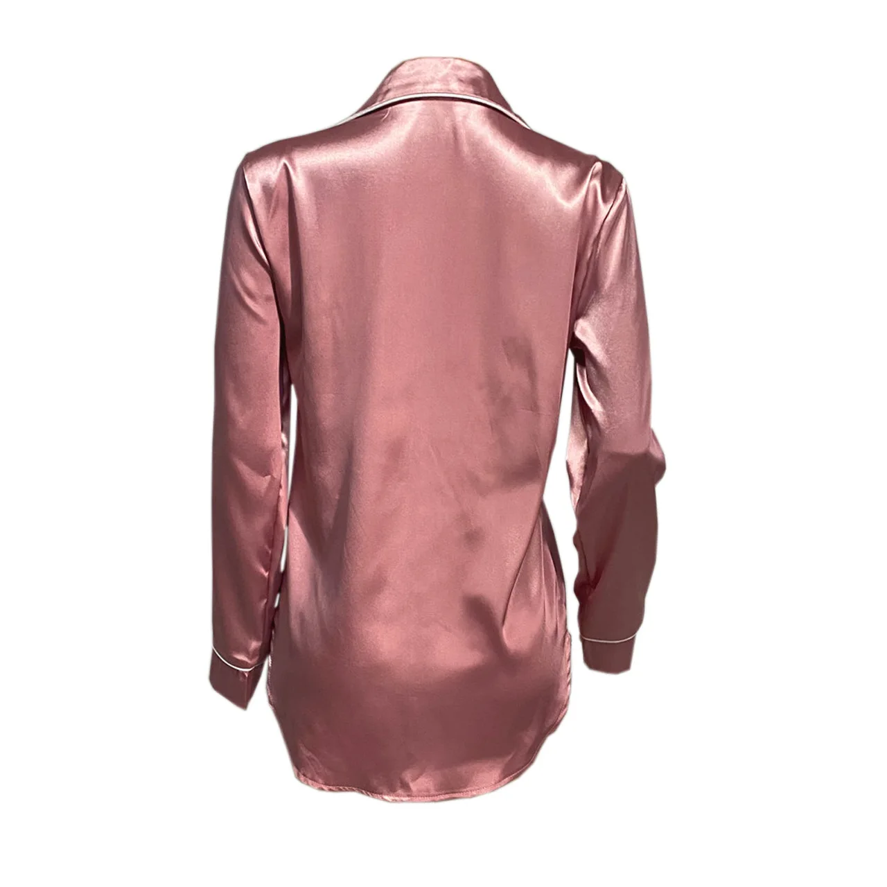 long sleeve shirt lounge wear silk pajamas night wear pyjamas women sleepwear