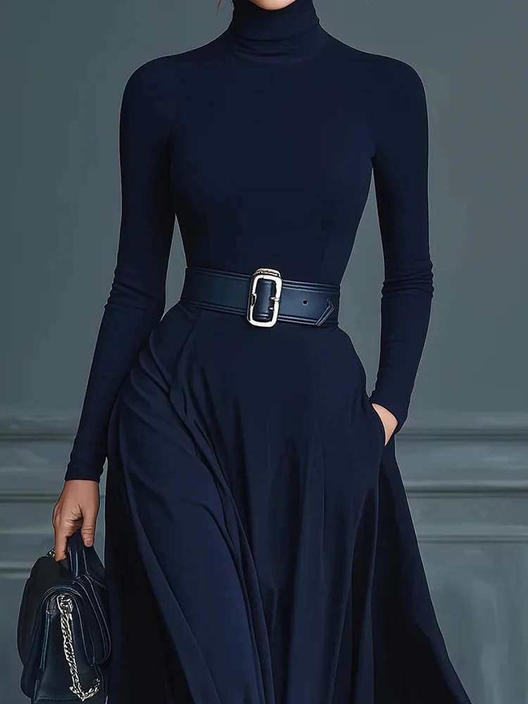Long Sleeve Simple Holiday Party Dress Women Autumn Turtleneck Elegant Maxi Dress New Patchwork Slim Fit Ladies Dress Vestidos