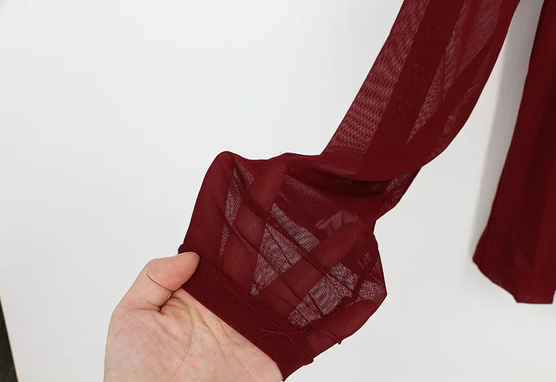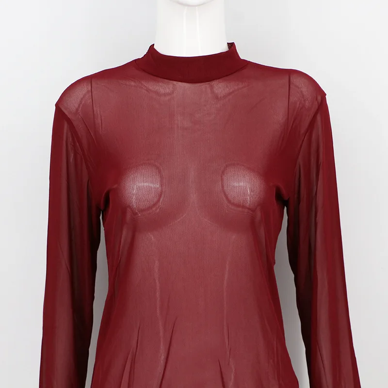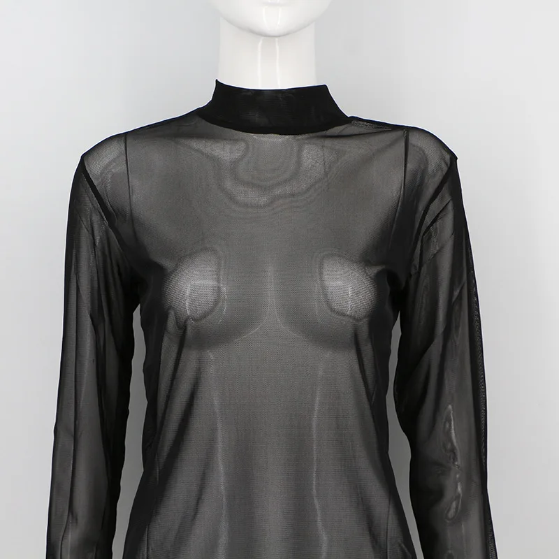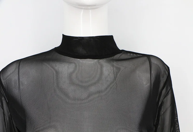 Long Sleeve transparent mesh women tops t shirts sexy transparent mesh top