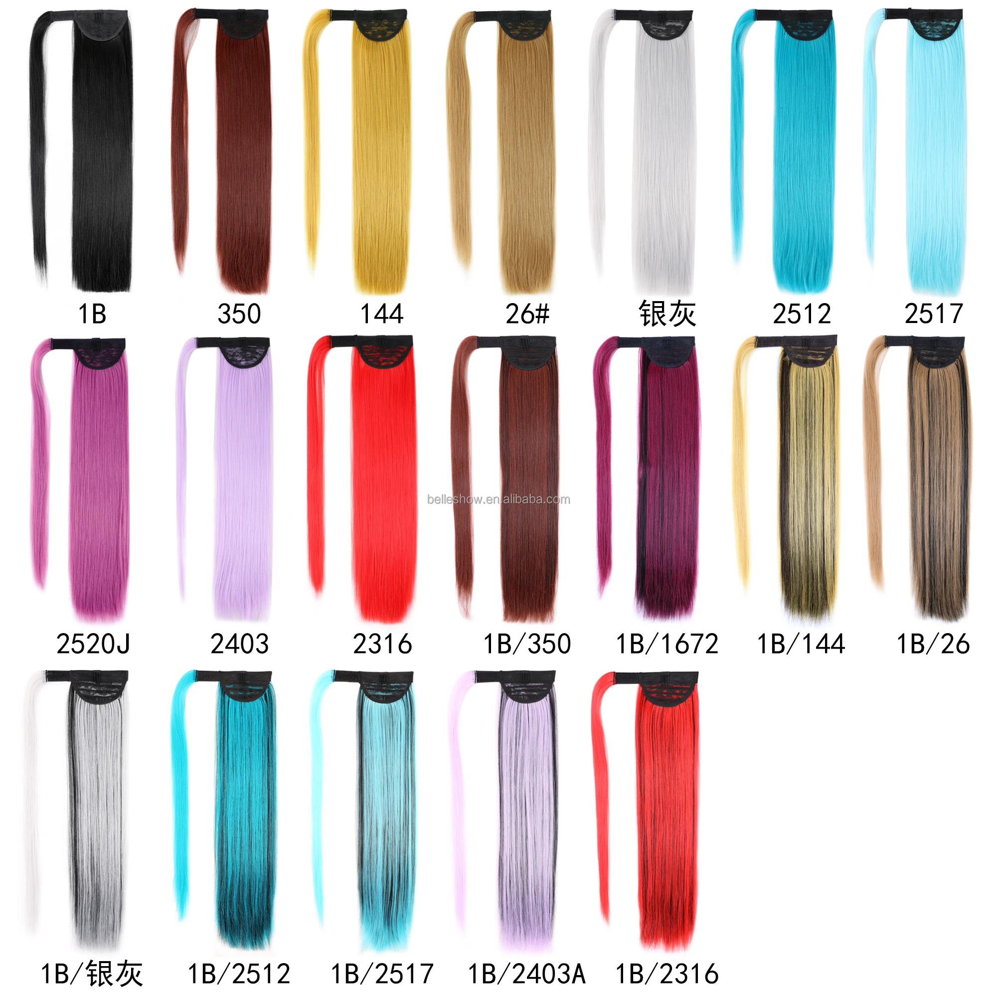 Wholesale Available Ombre Mixed Color Straight Synthetic Ponytail Wrap Around Magic Paste Ponytail