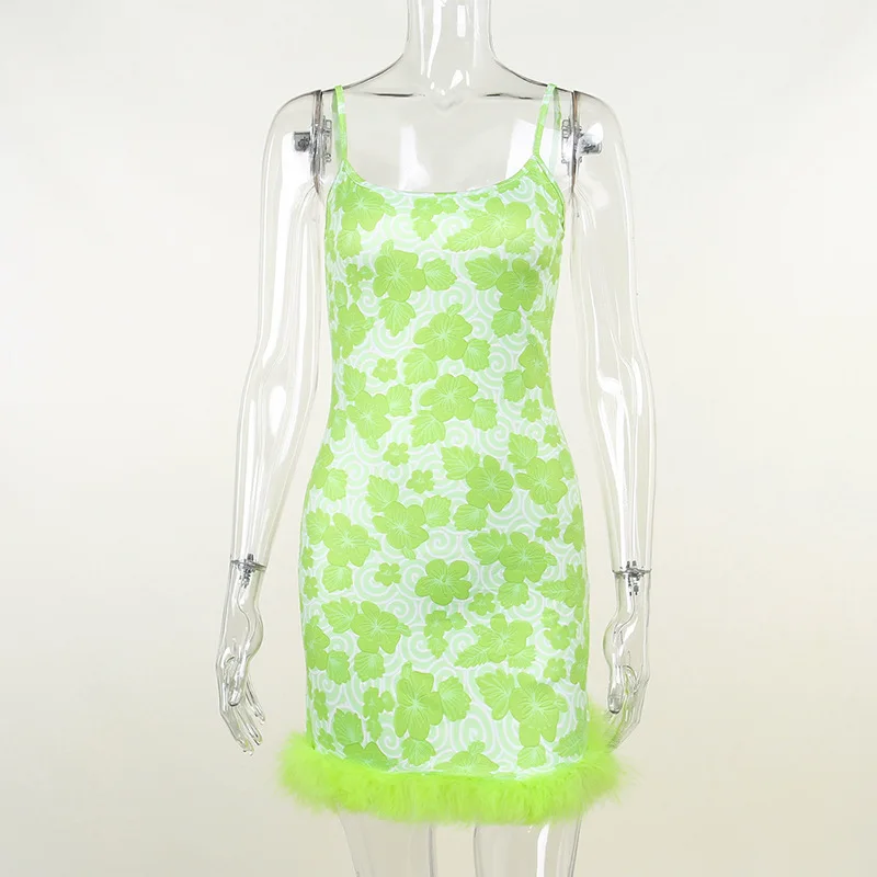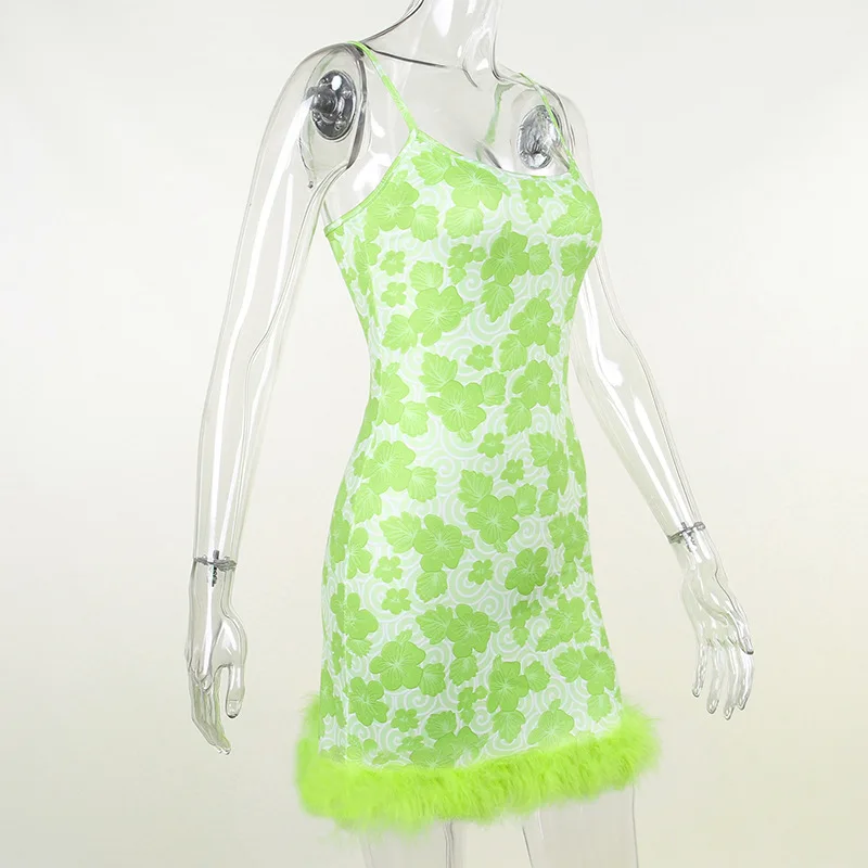 LQ22141 2023 Hot Style Elegant Party Bandage Spaghetti Strap Dress Feather Slit Long Sleeveless Summer Womens Dresses