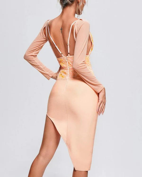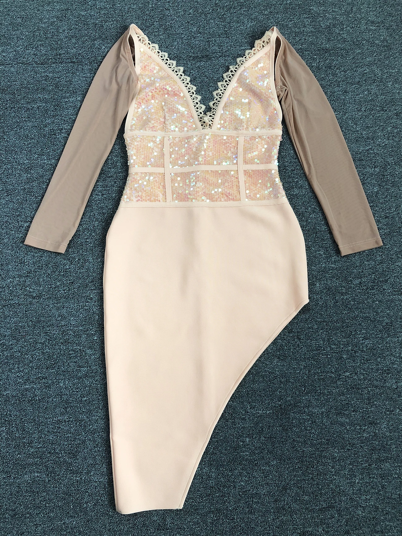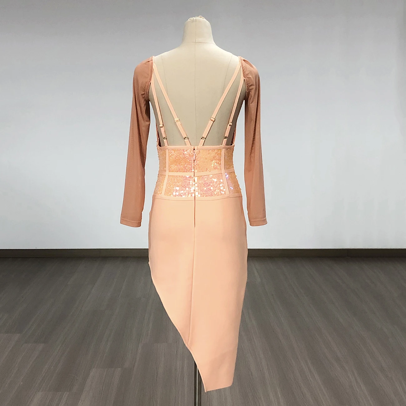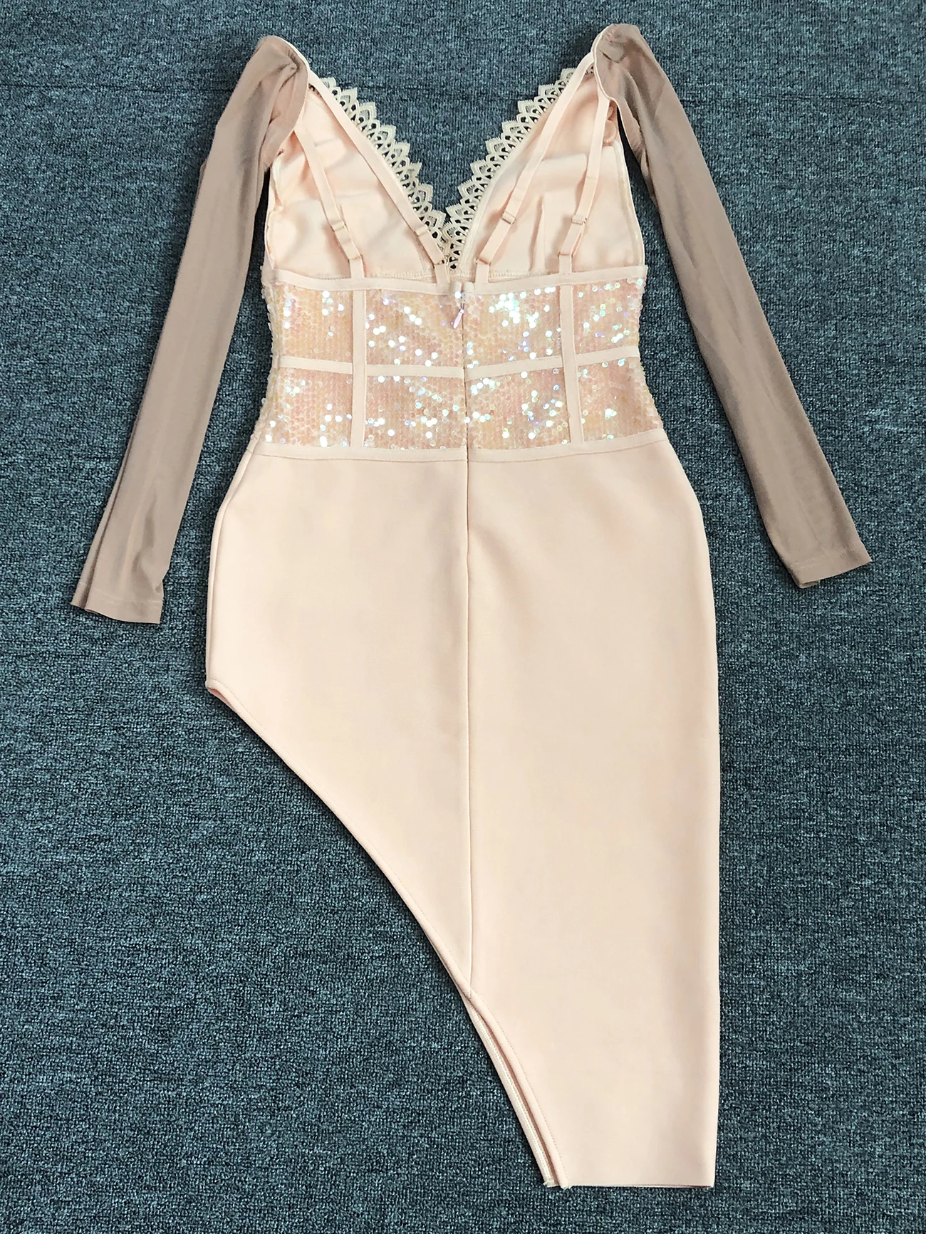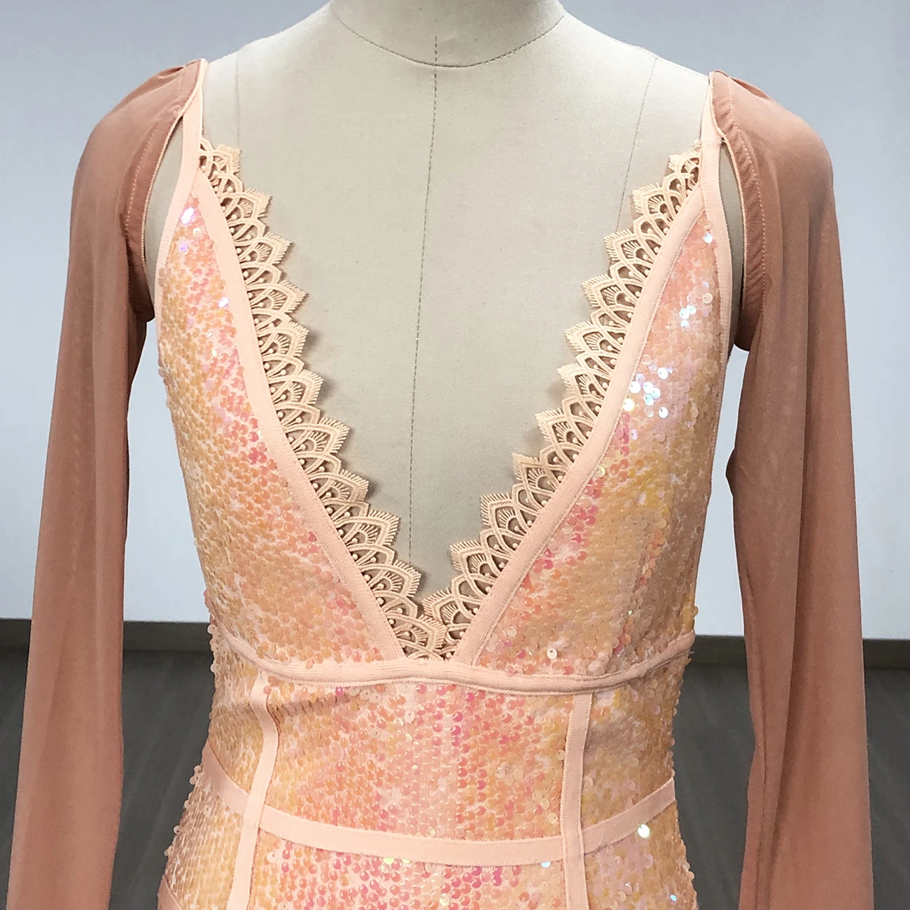 LS2288 V-Neck Backless Elegant Dress Bandage Dresses Stylish Bodycon Woman Party Dresses Bling Sequin