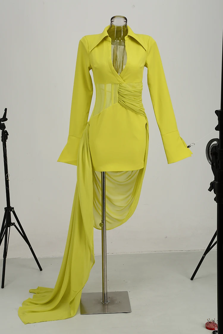 LS2299 New Arrival See Through Mesh Dresses Long Sleeve Dresses Women V Neck Mini Dress For Party Elegant