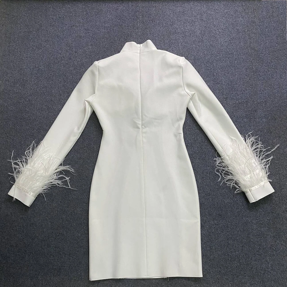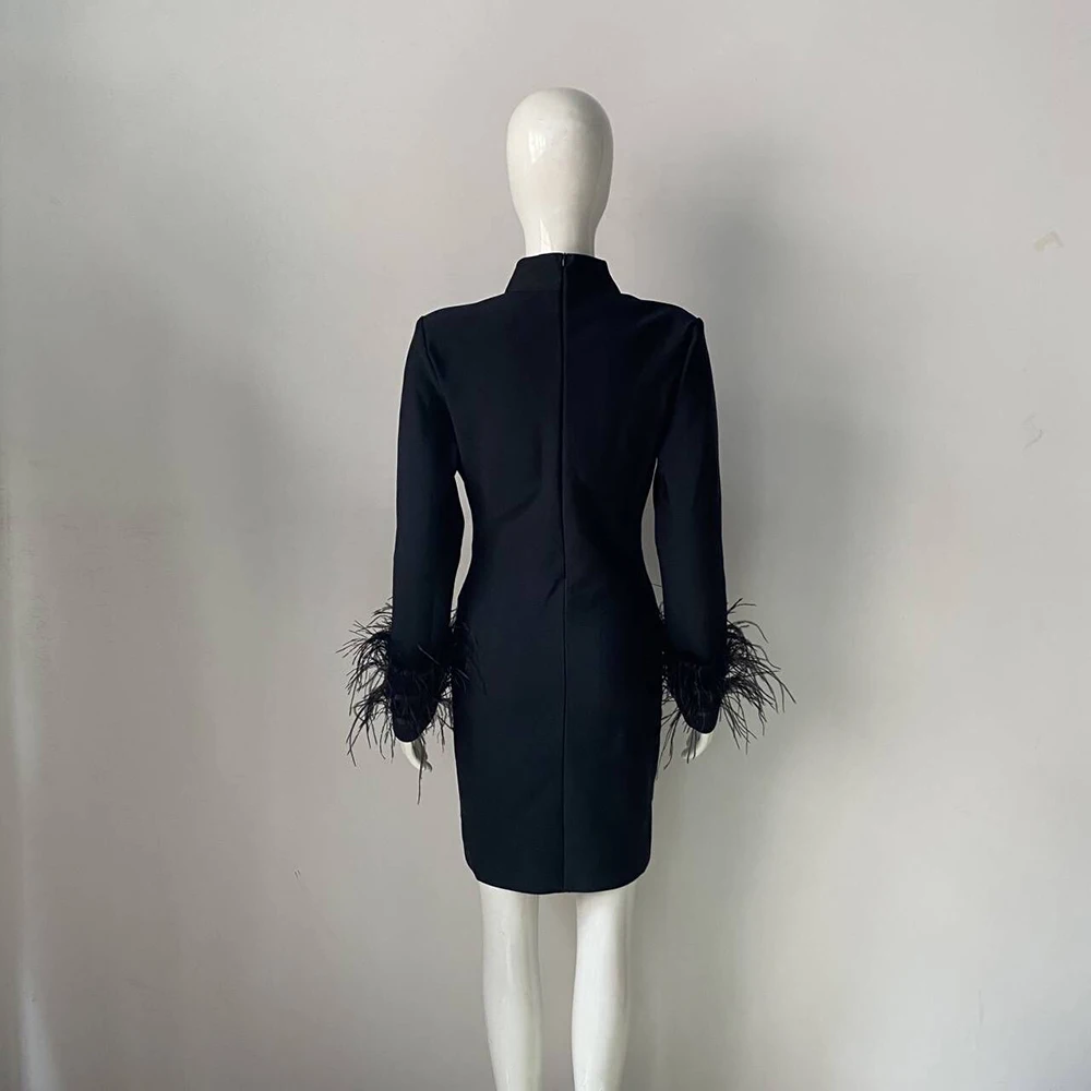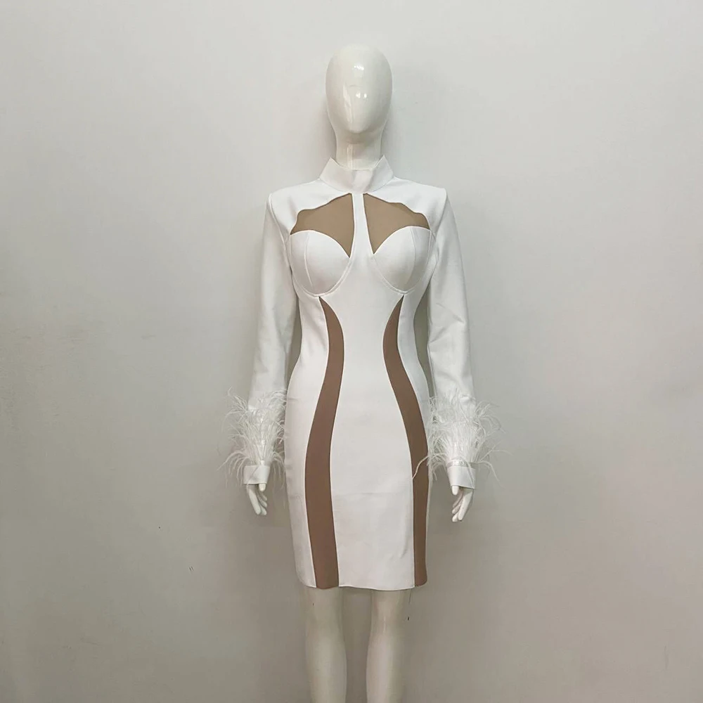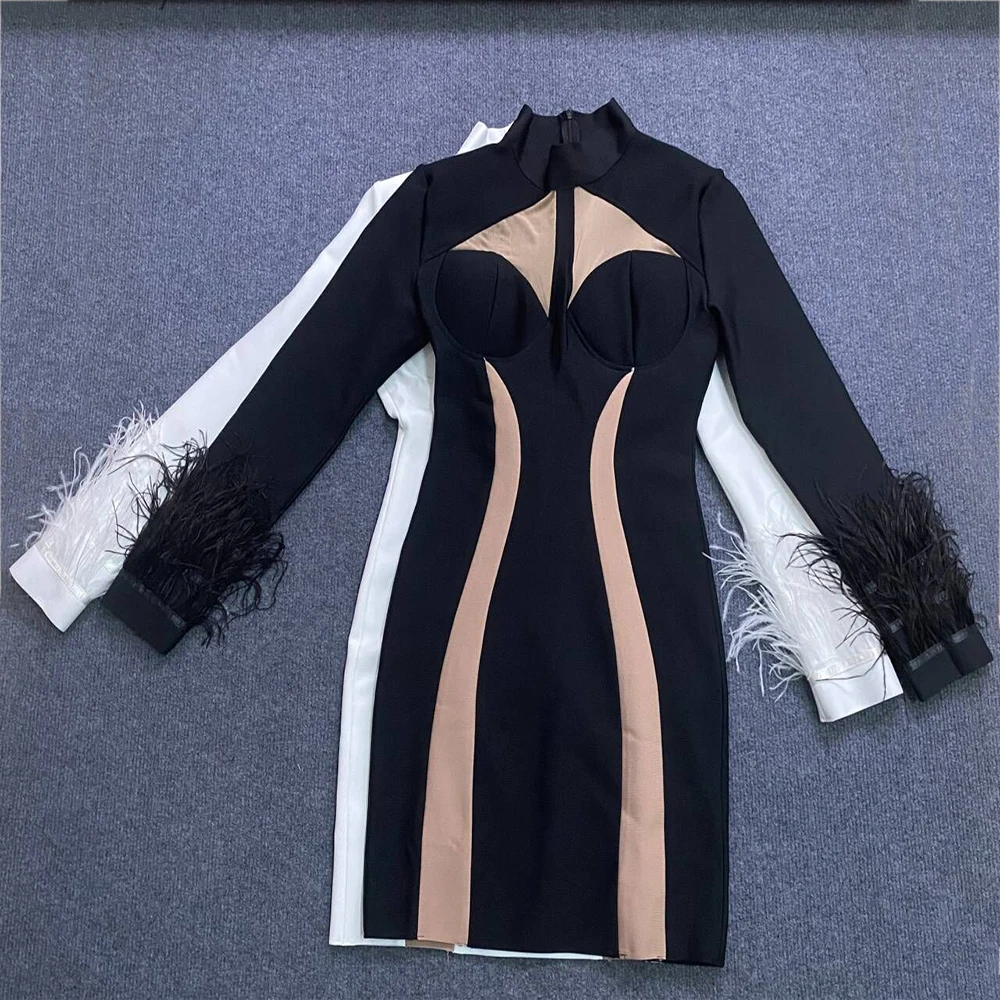 LS2321 Bandage Elegant Feather Dresses Hot Sexy Night Club Mini Dress Transparent Bandage Elegant Feather Dress