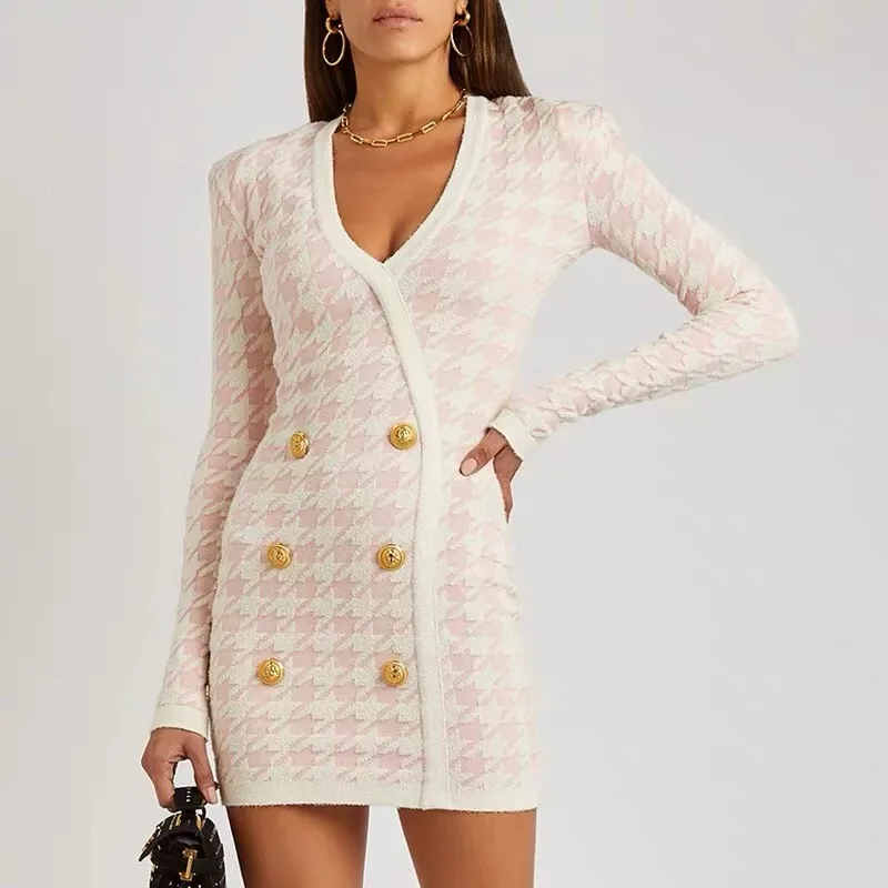 LS2325 Elegant Party Dress Luxury Bodycon V-Neck Formal Stylish Clothes Long Sleeve Mini Dresses For Women Sexy