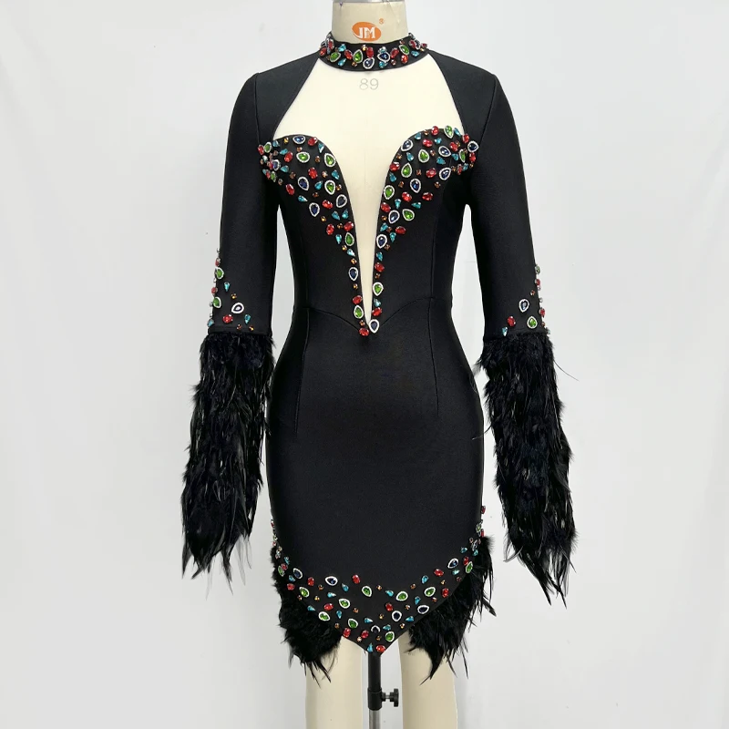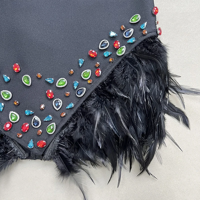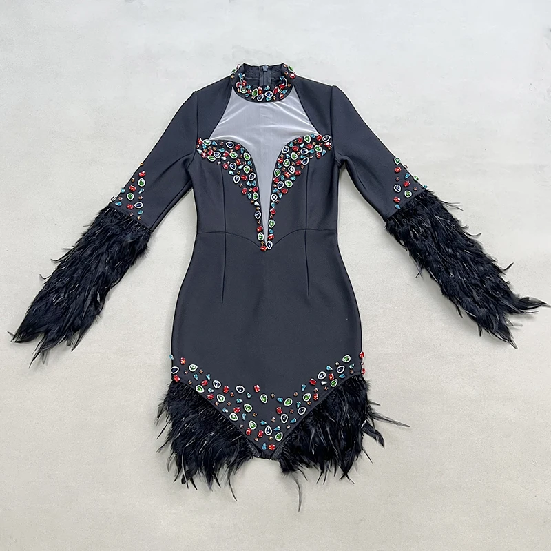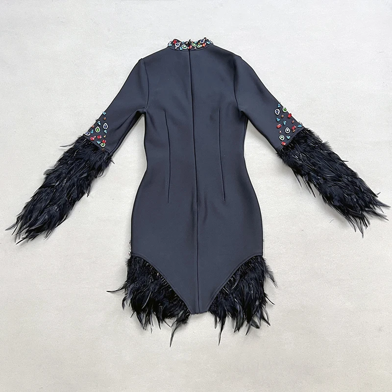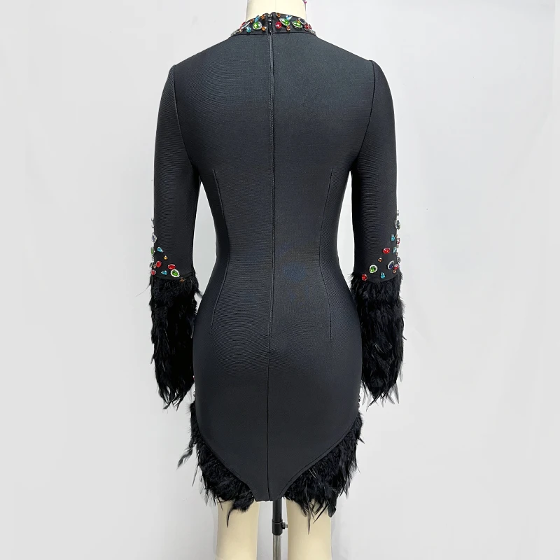 LS2366 New Arrival High Fashion Party Dresses Women Short Elegant Evening Dresses Feather Bandage Dress