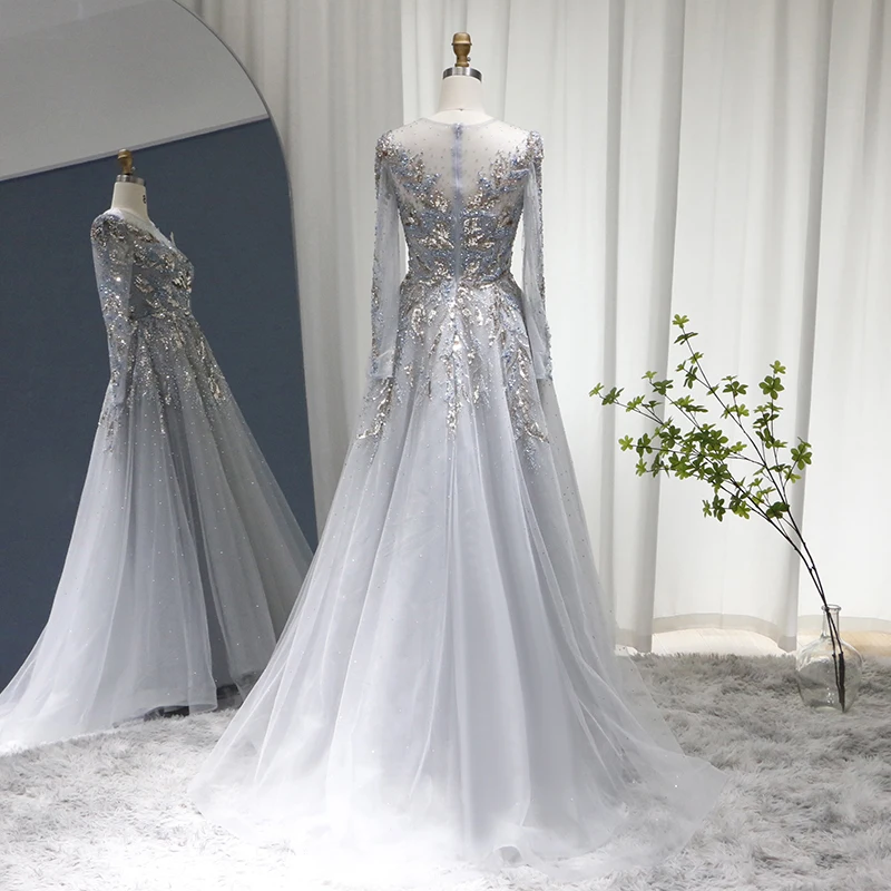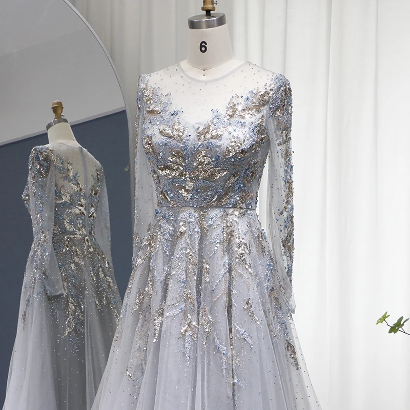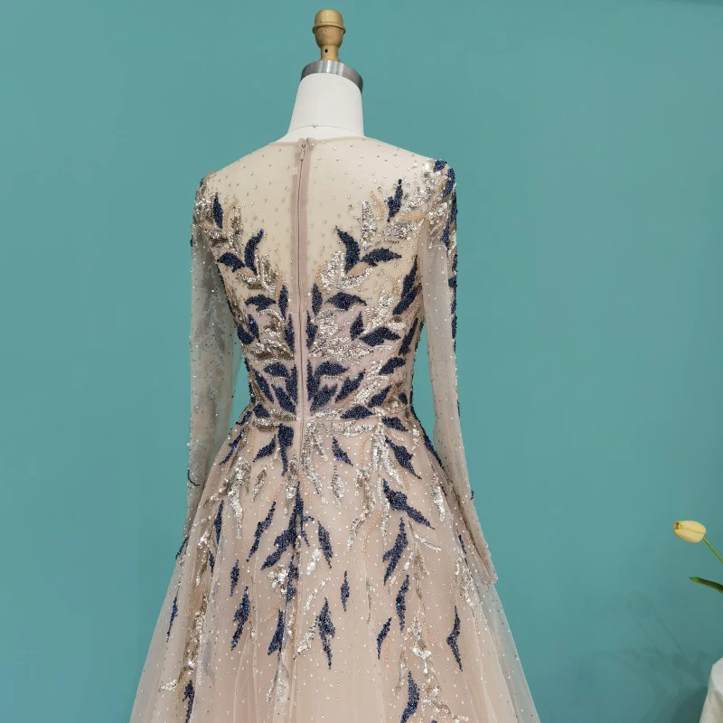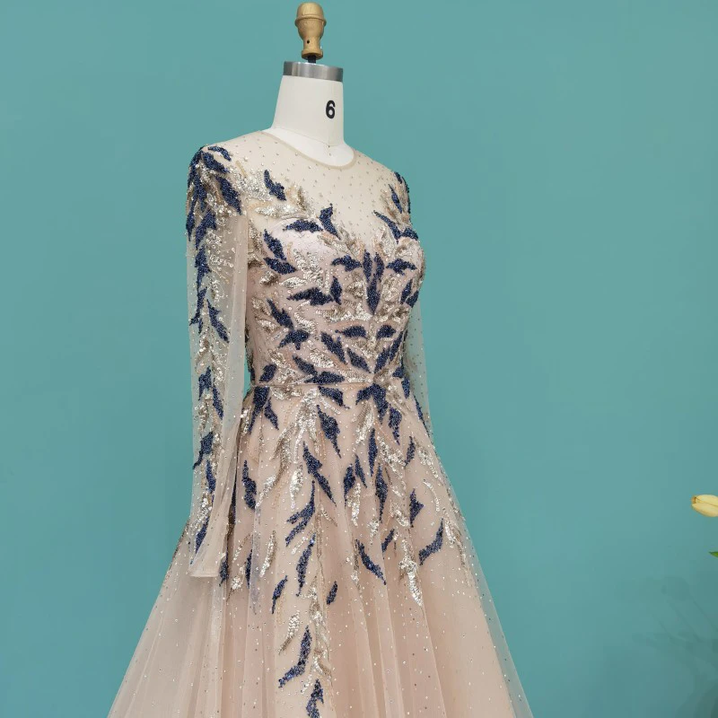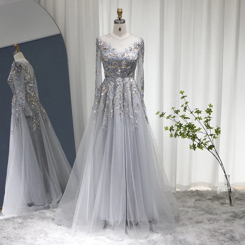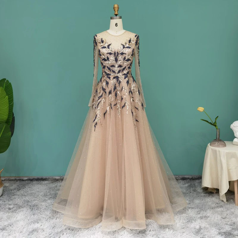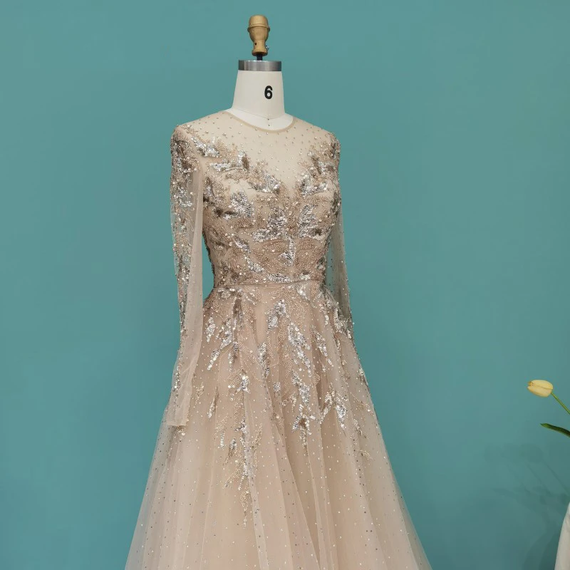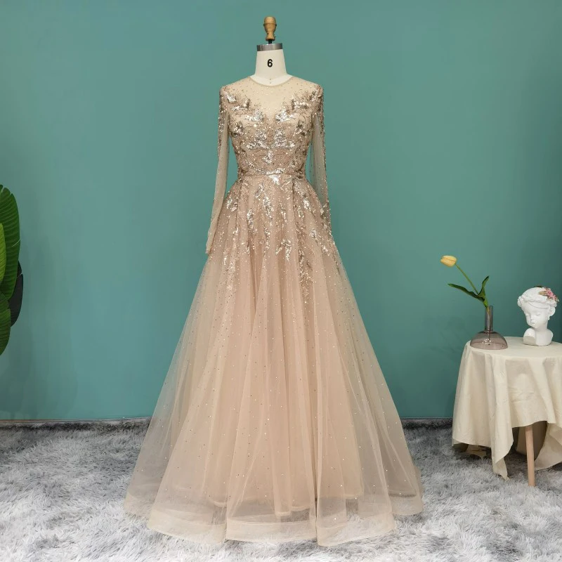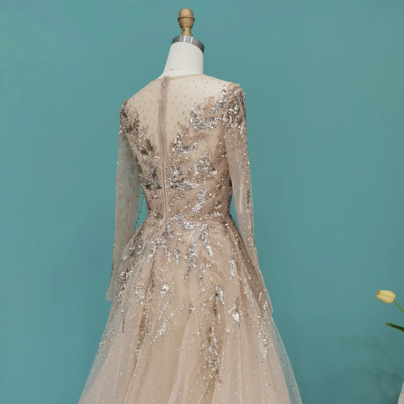 Lscz163 Luxury Dubai Muslim Evening Dresses Long Sleeve Elegant Beads Arabic Formal Party Dress For Women Wedding