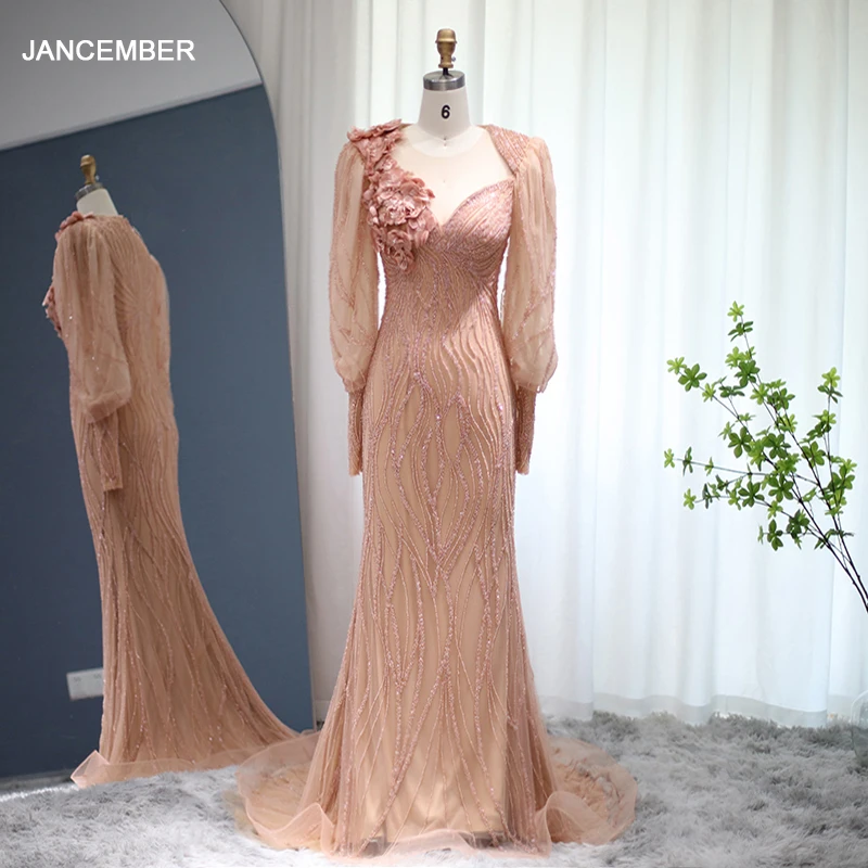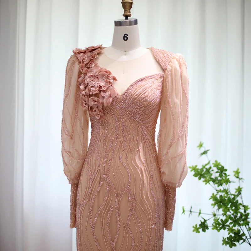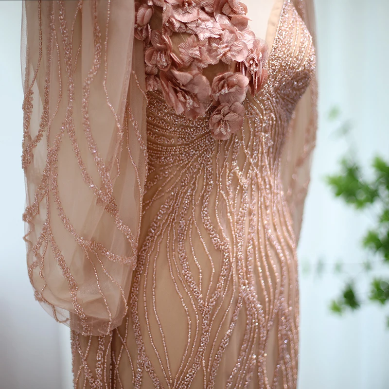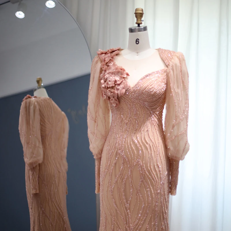 Lscz165 Luxury Dubai Rose Gold Mermaid Muslim Evening Dress For Women Wedding Party Elegant Long Arabic Formal Dresses