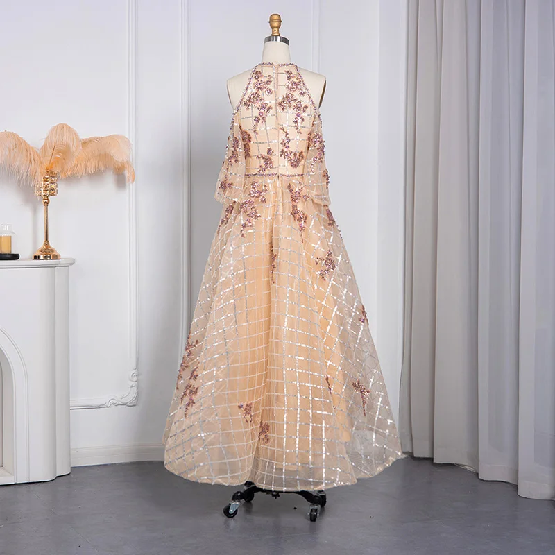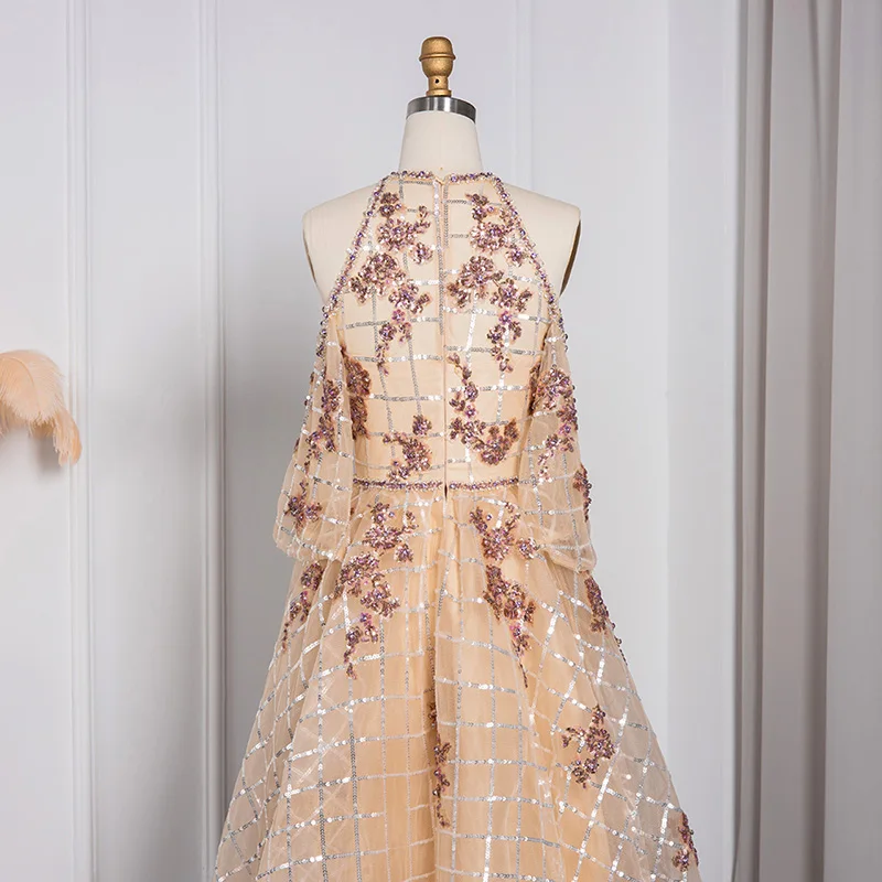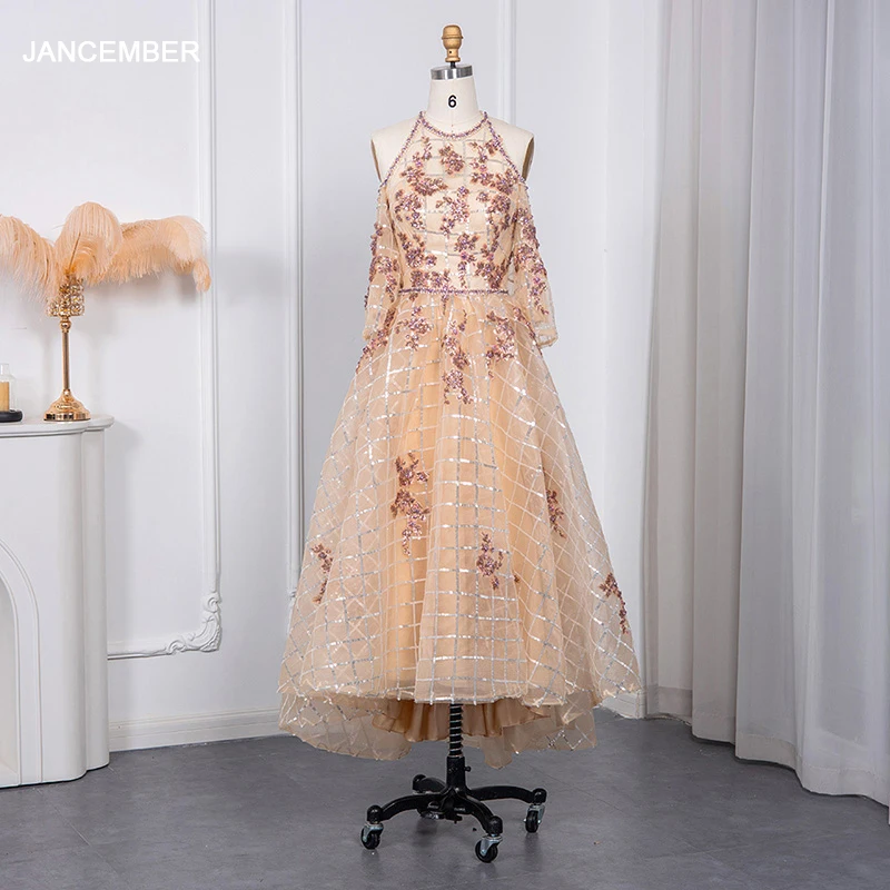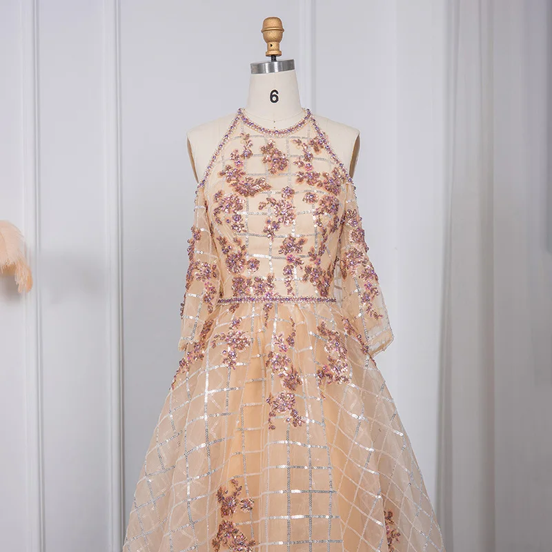 Lscz175 Sparkly Champagne Dubai Short Front Long Back Evening Dress Luxury High Low Arabic Women Wedding Party Gowns