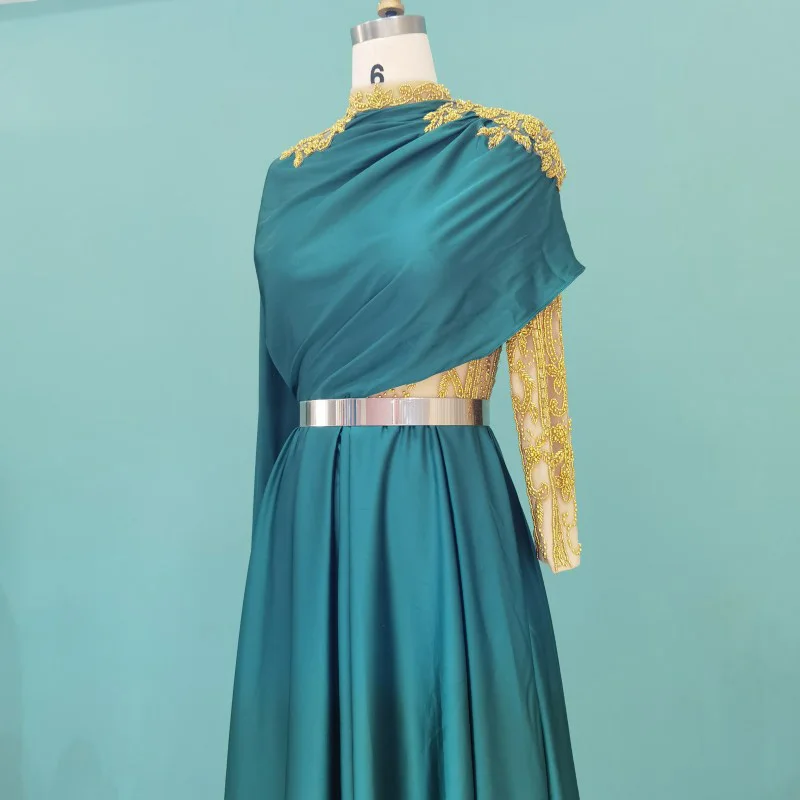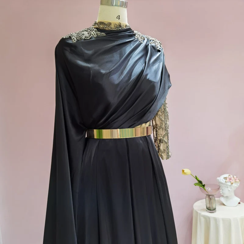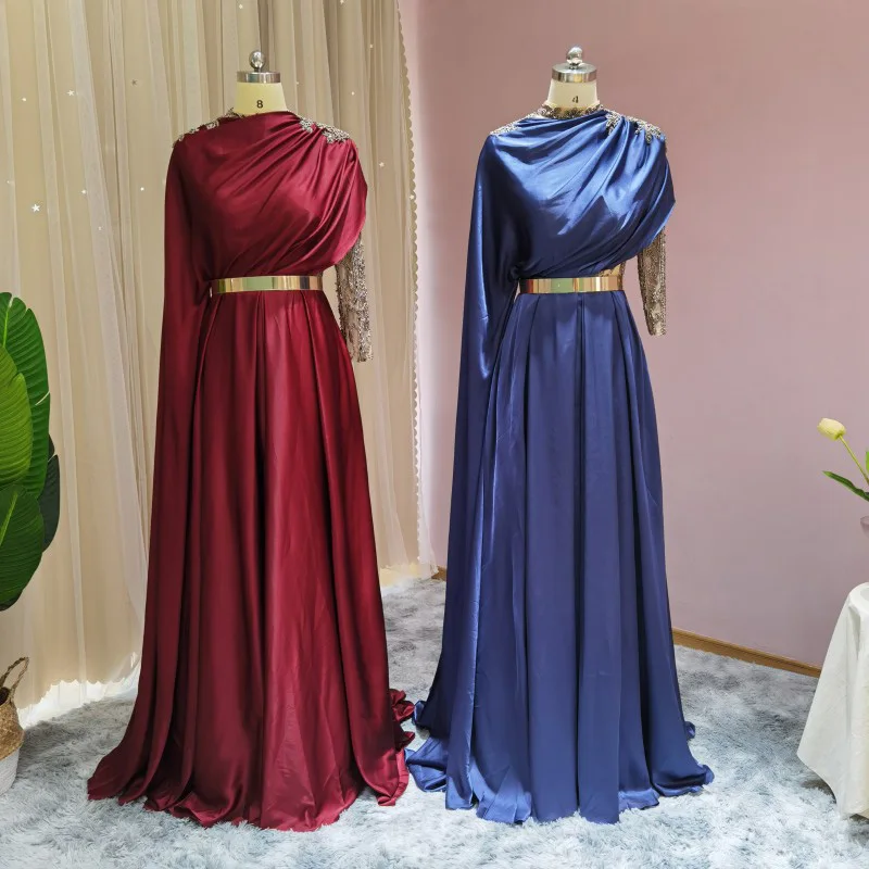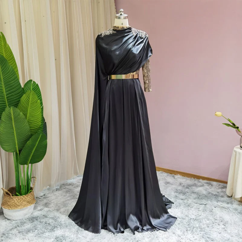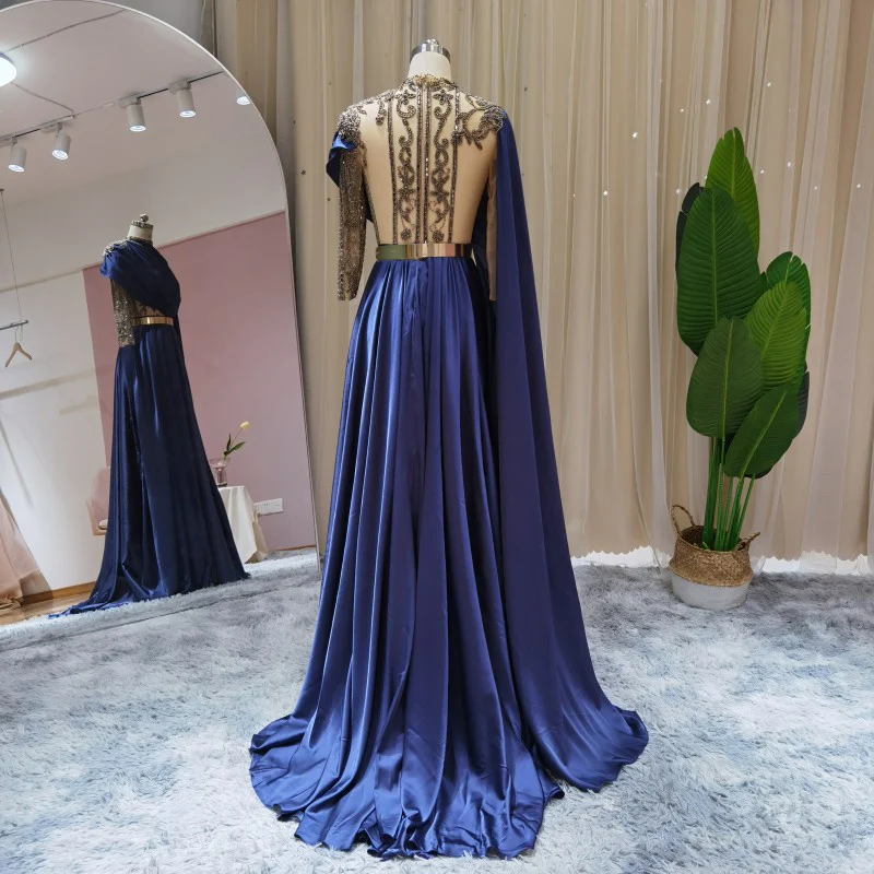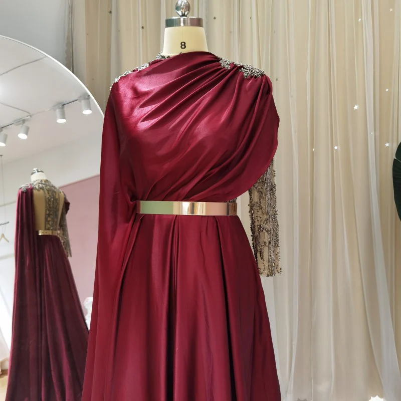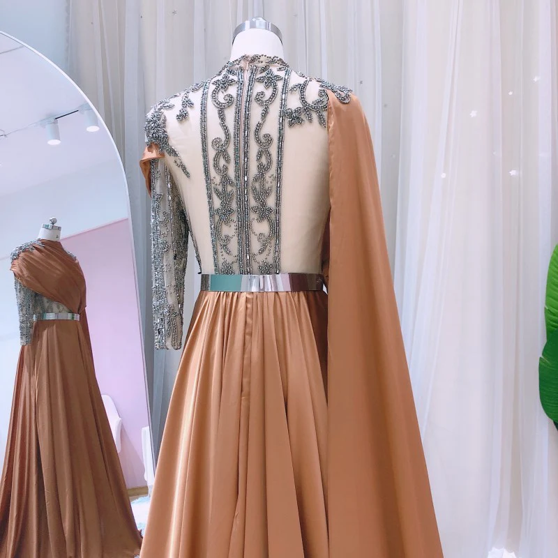 Lscz181 Luxury Arabic Orange Brown Long Sleeve Evening Dress With Cape Dubai Beaded Elegant Women Wedding Party Gowns