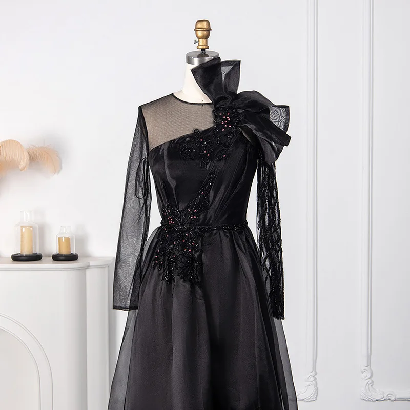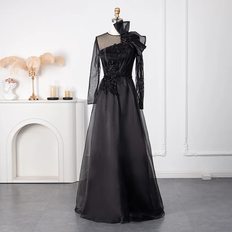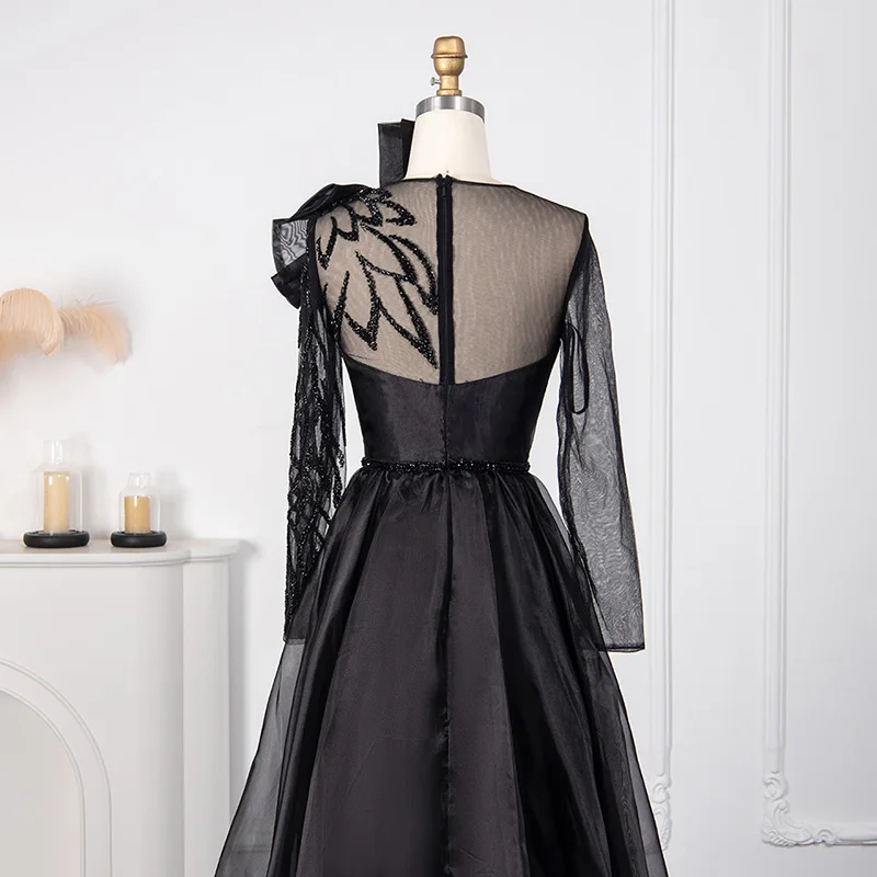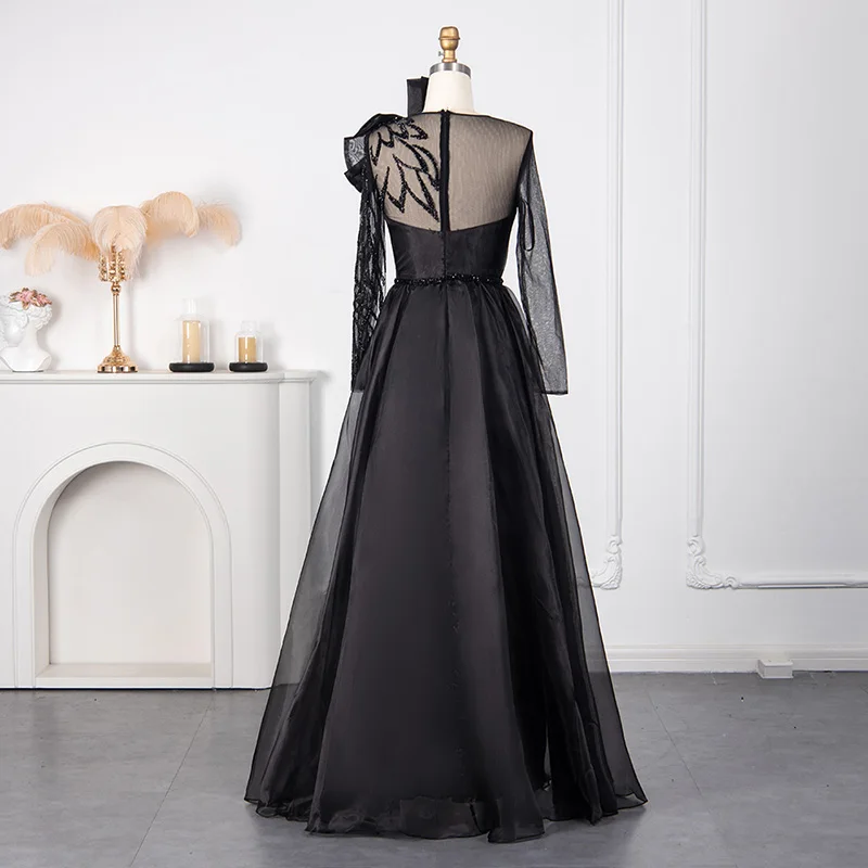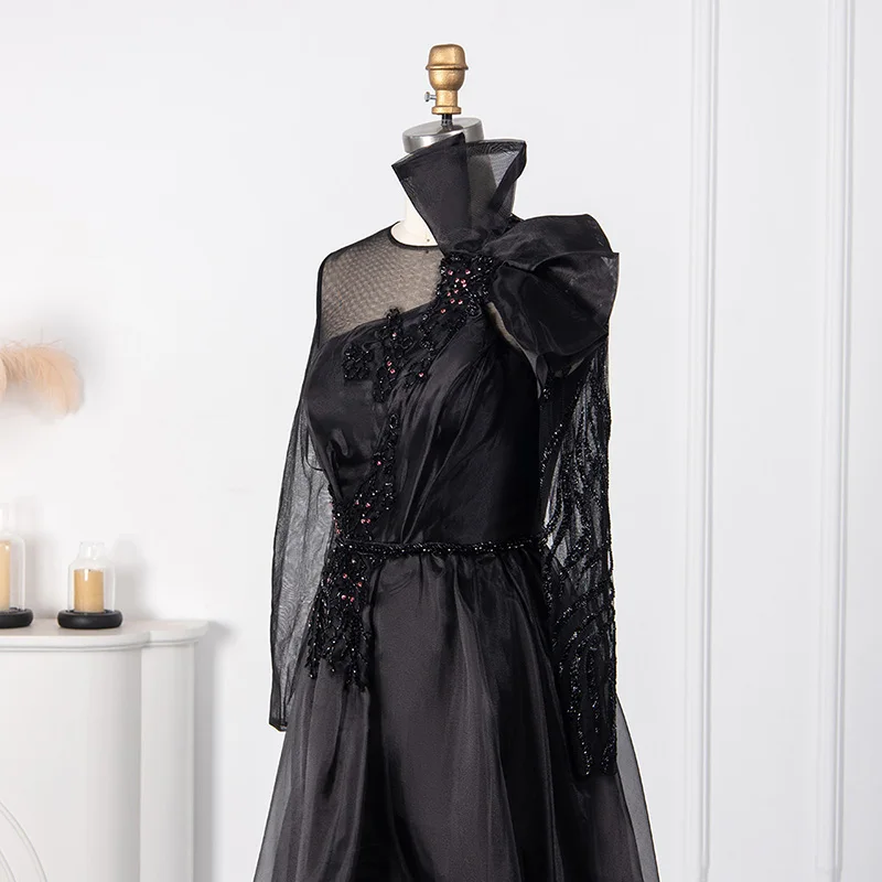 Lscz183 Arabic Black Evening Dress Luxury Dubai Beaded Long Sleeve Wedding Party Gowns Elegant Women Formal Dresses