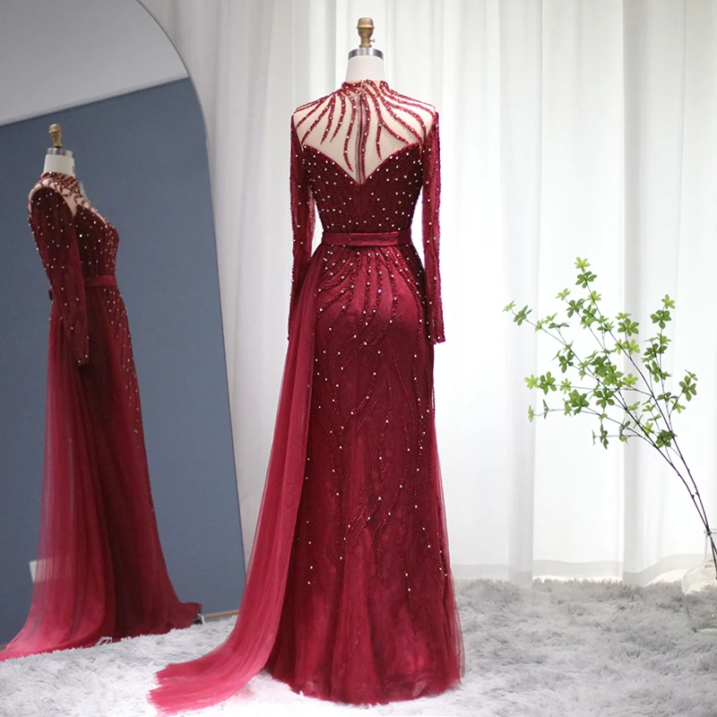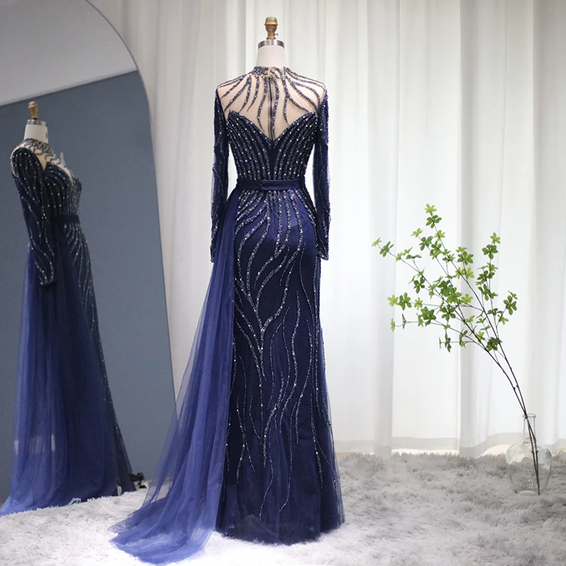 Lscz219 Luxury Mermaid Dubai Evening Dress With Detachable Skirt Long Sleeve Arabic Formal Gowns For Women Wedding Party