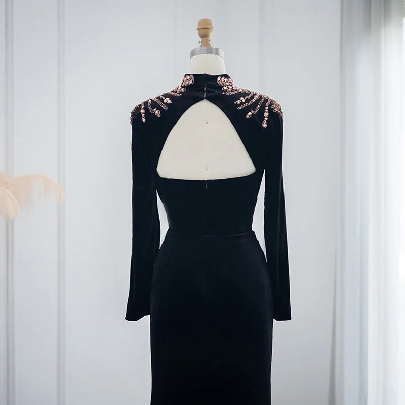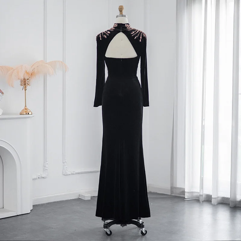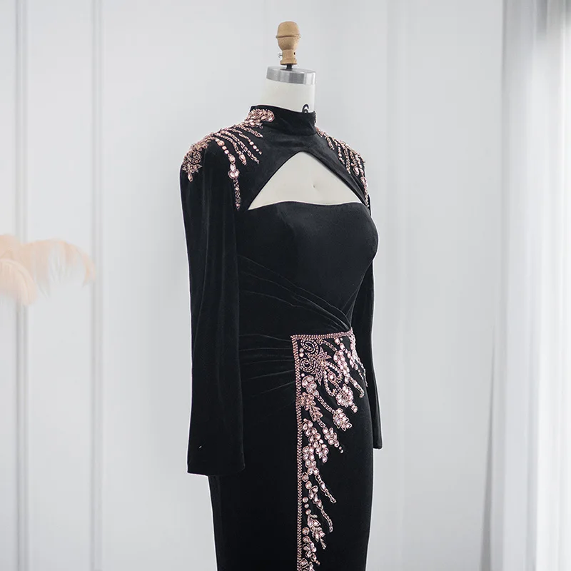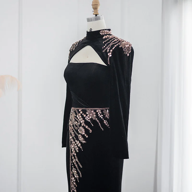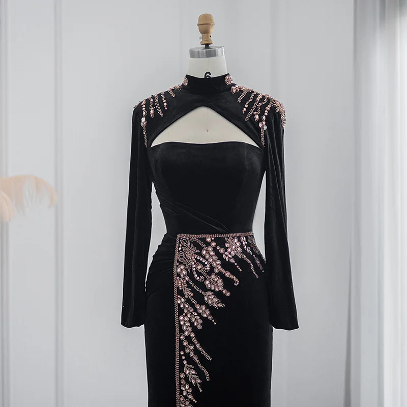Lscz223 Elegant Black Velvet Mermaid Muslim Evening Dress Luxury Dubai Long Sleeve Arabic Women Wedding Party Gowns
