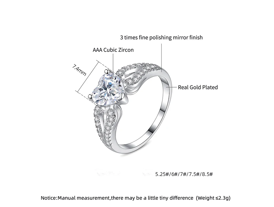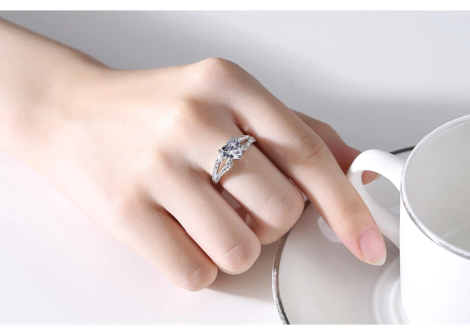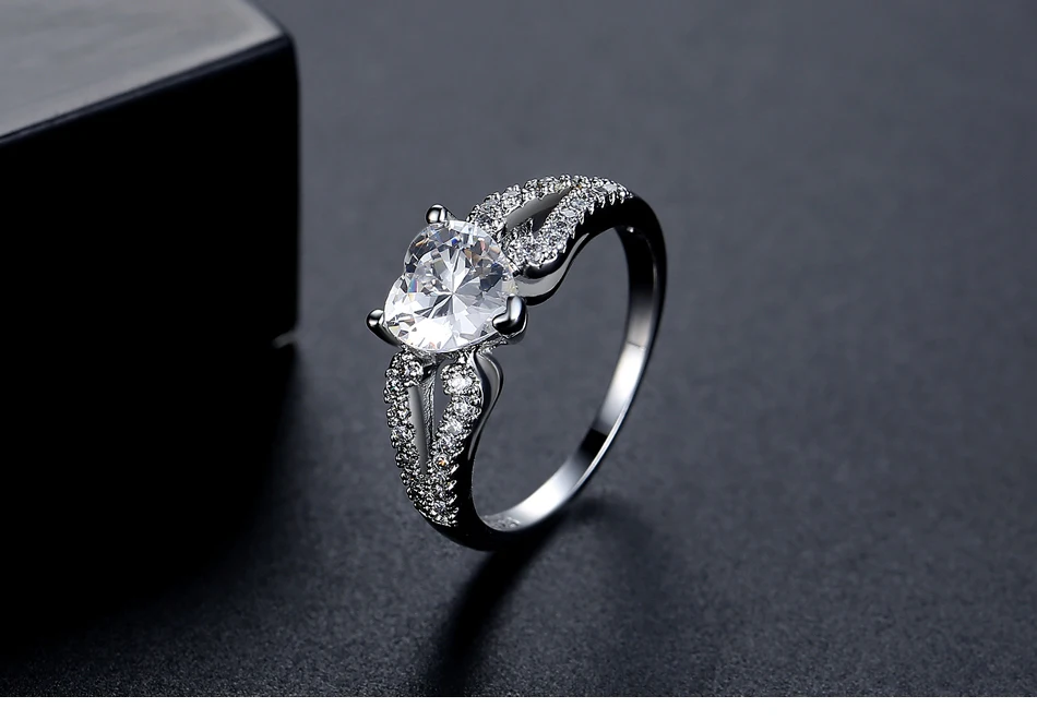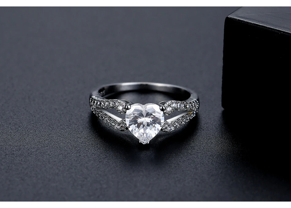 LUOTEEMI Diamond Stone Jewelry Woman Eternity Heart Shape Fashion Fancy Popular Claw Engagement Zircon Ring