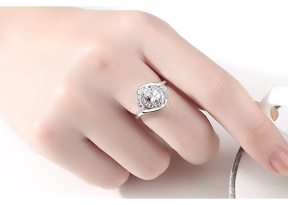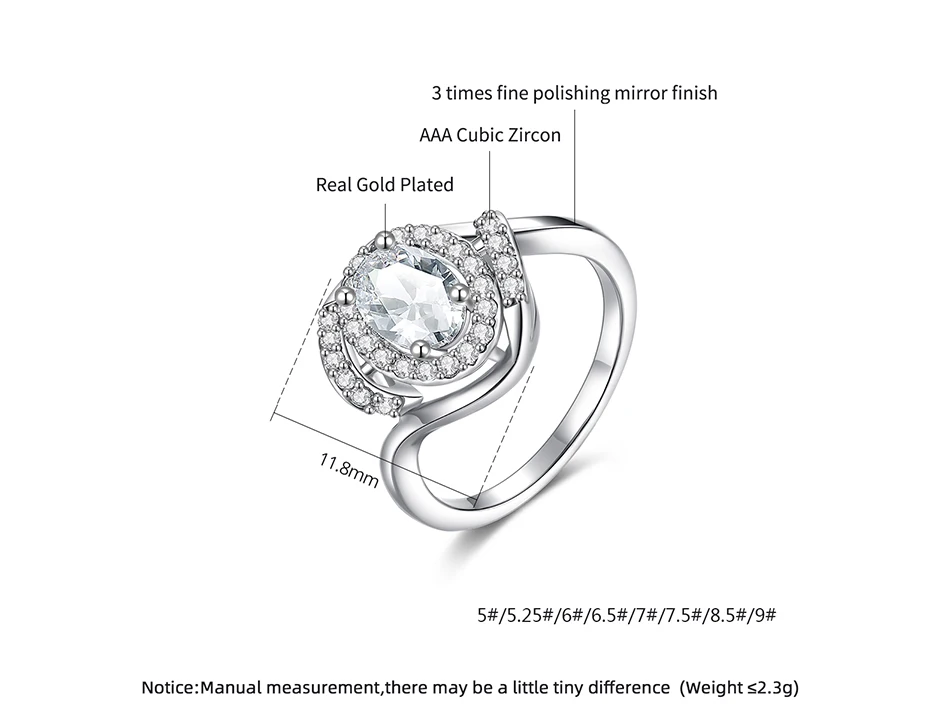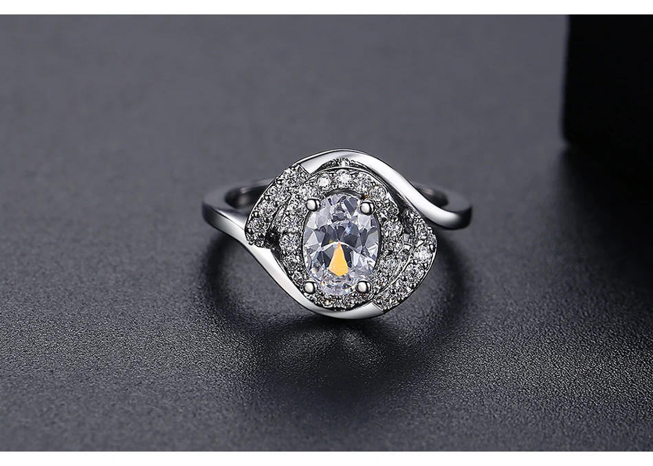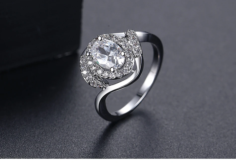 LUOTEEMI European Design Fashion White Gold Plated Party Jewelry CZ Engagement Ring for Women