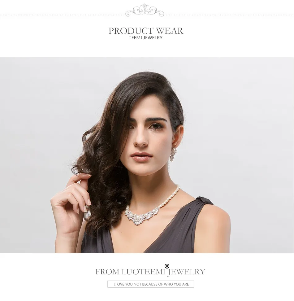 LUOTEEMI New Luxury White Gold Waterdrop Simulated Pearl Statement Earrings Necklace Set For Women Wedding Party Jewelry Set