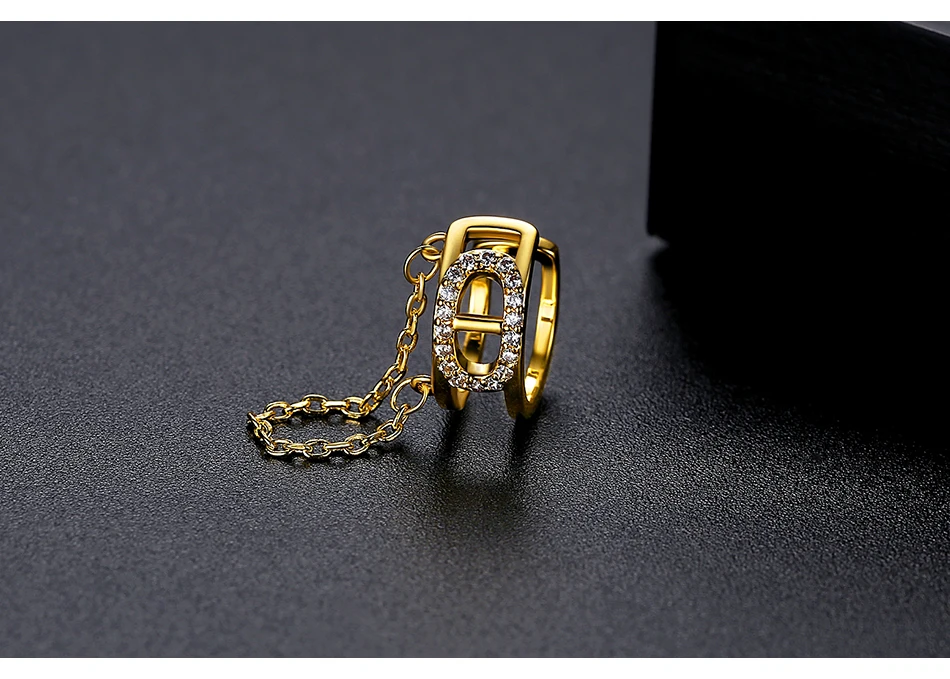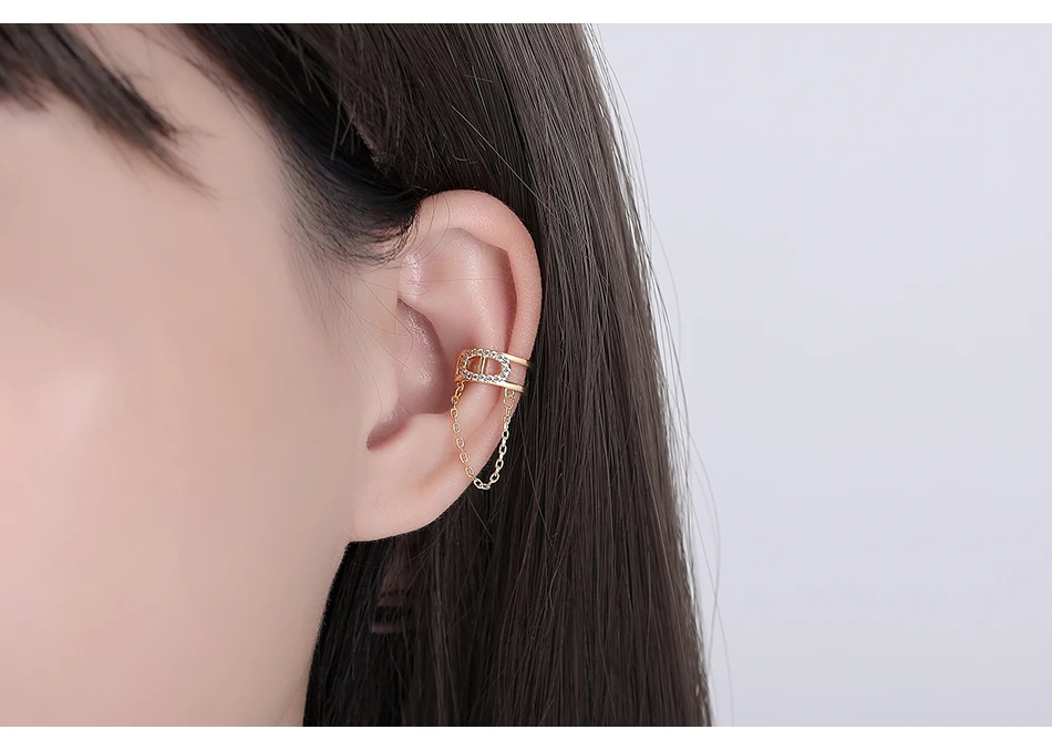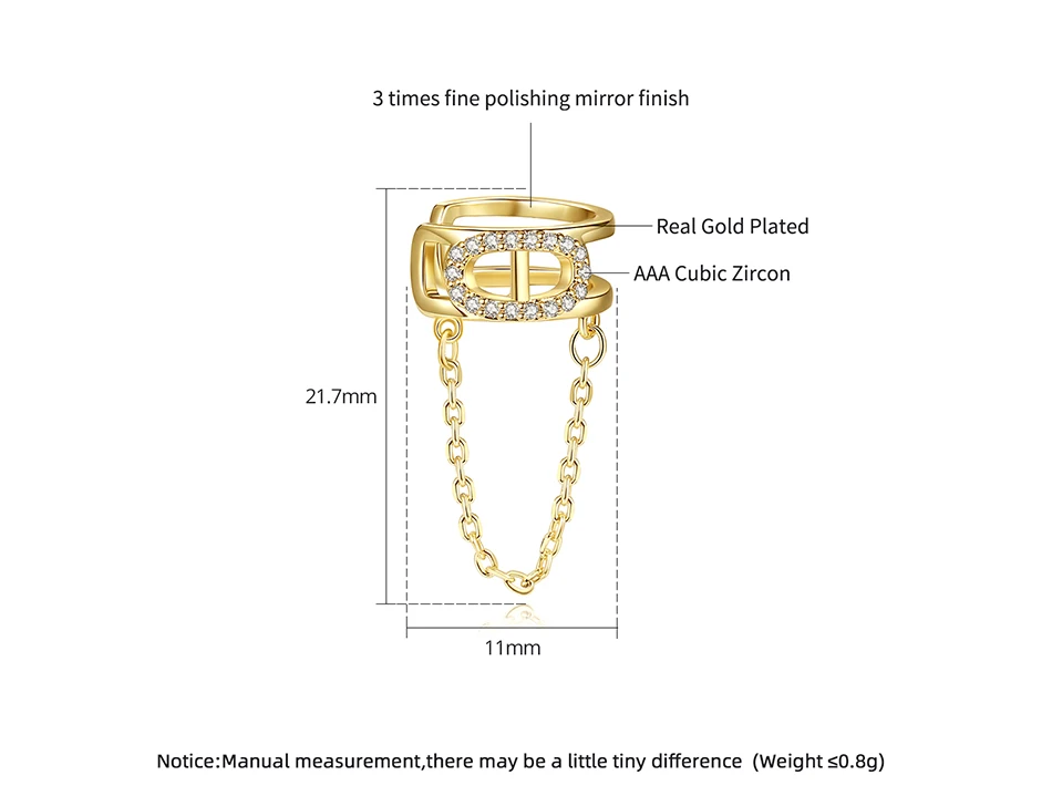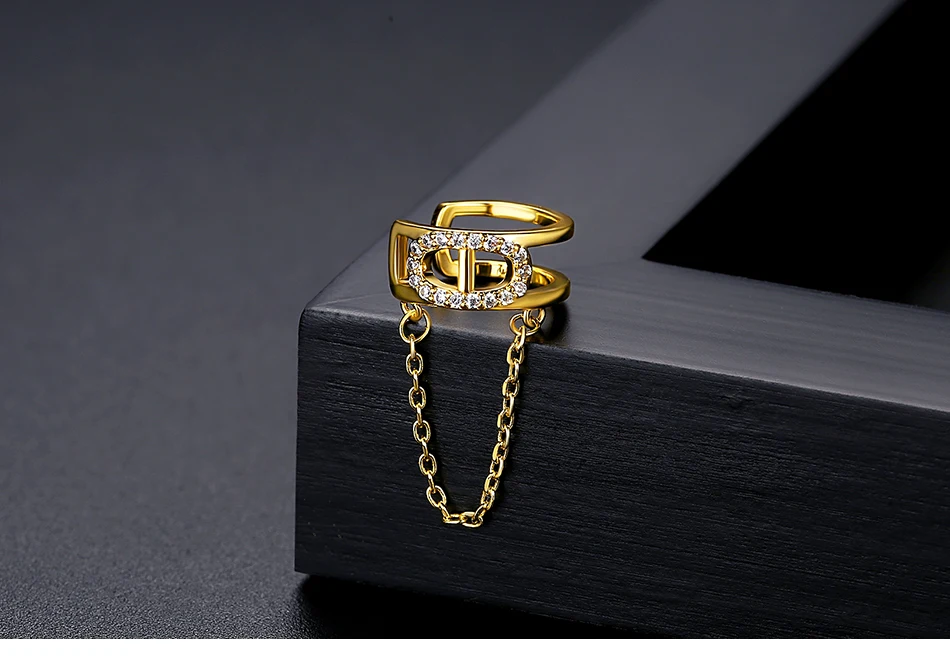 LUOTEEMI Popular Iced Out Hoop Chain Earing C Shape Gold Hoop 18K Cartilage Cuff Tassel Earring