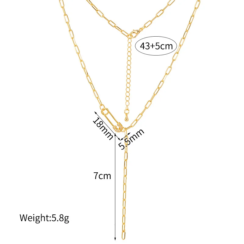Luxe niche design party jewelry water wave pin charm Y shape necklace 925 sterling silver jewelry multi layer collarbone chain