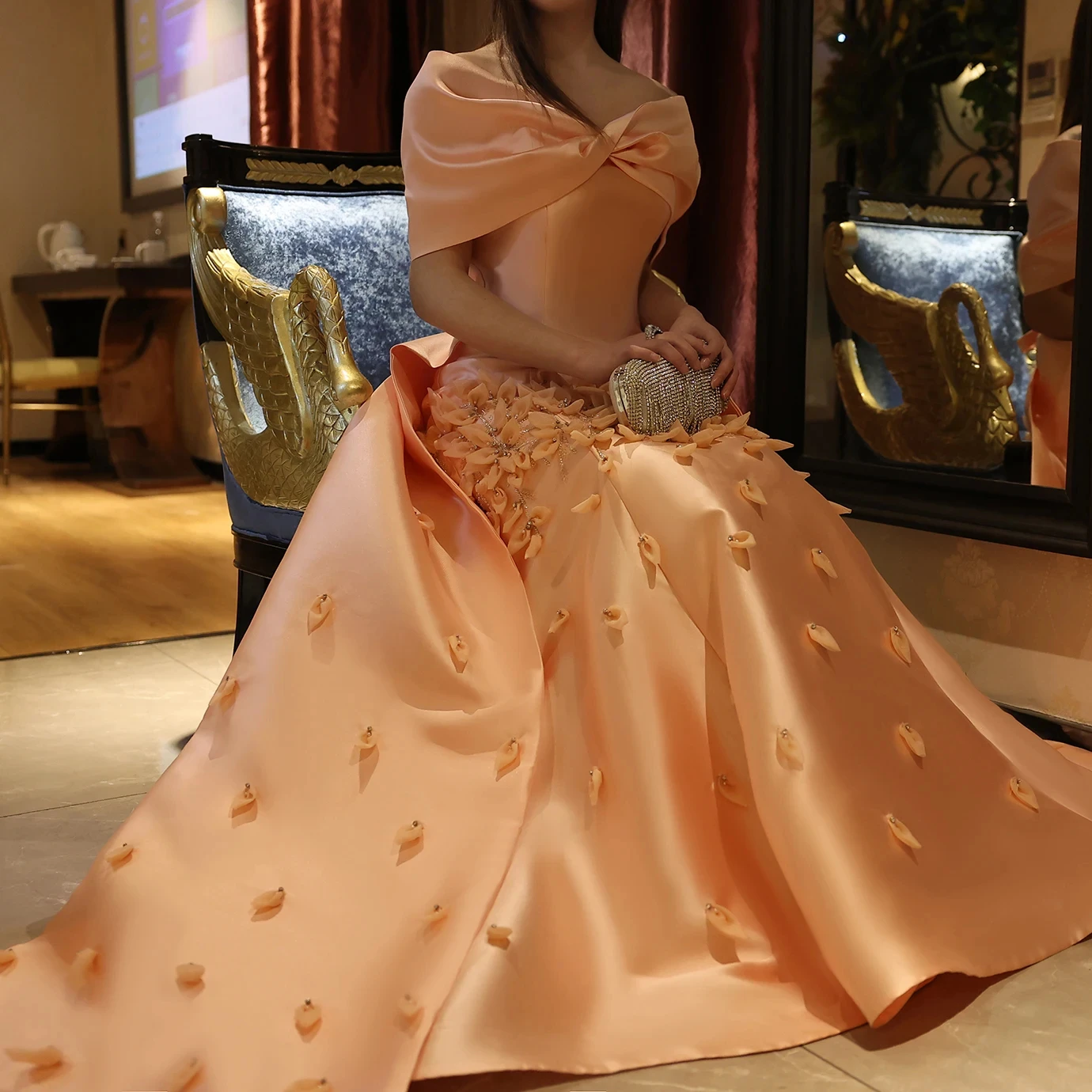 Luxury 3D Flowers Blush Pink Satin Mermaid Evening Dress Elegant Off Shoulder Women Wedding Prom Party Gowns Sz464