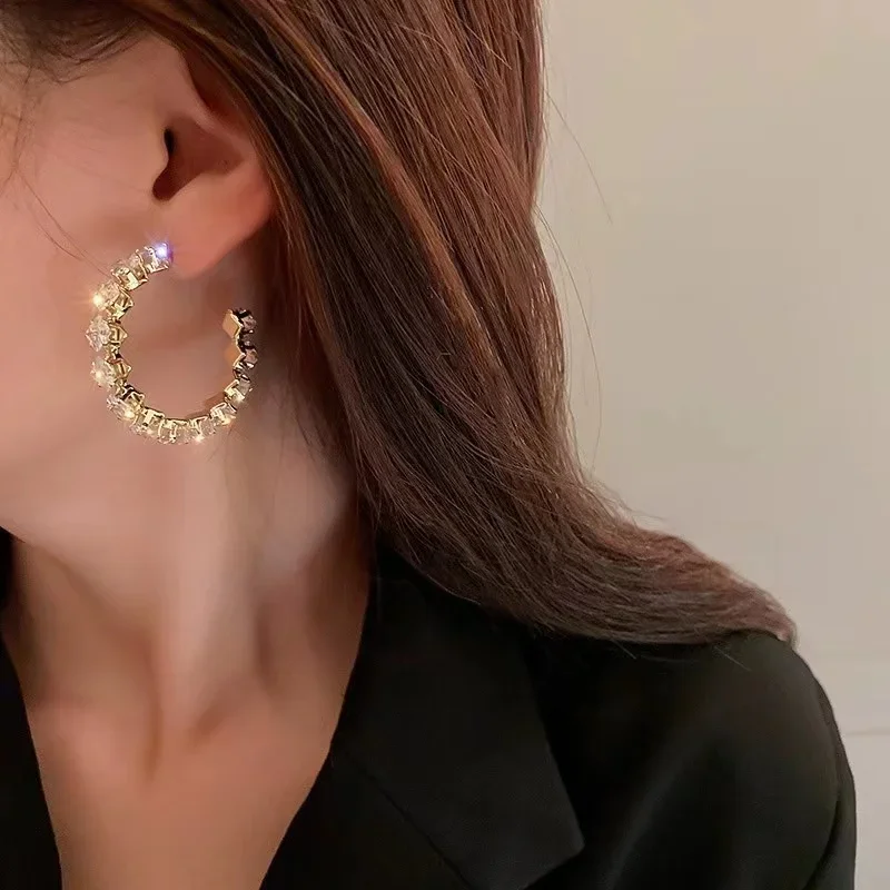 Luxury 925 Silver Pin Hypoallergenic CC Earrings Exquisite Crystal Rhinestone Hoop Earrings Designer Jewelry Jewelry for Women