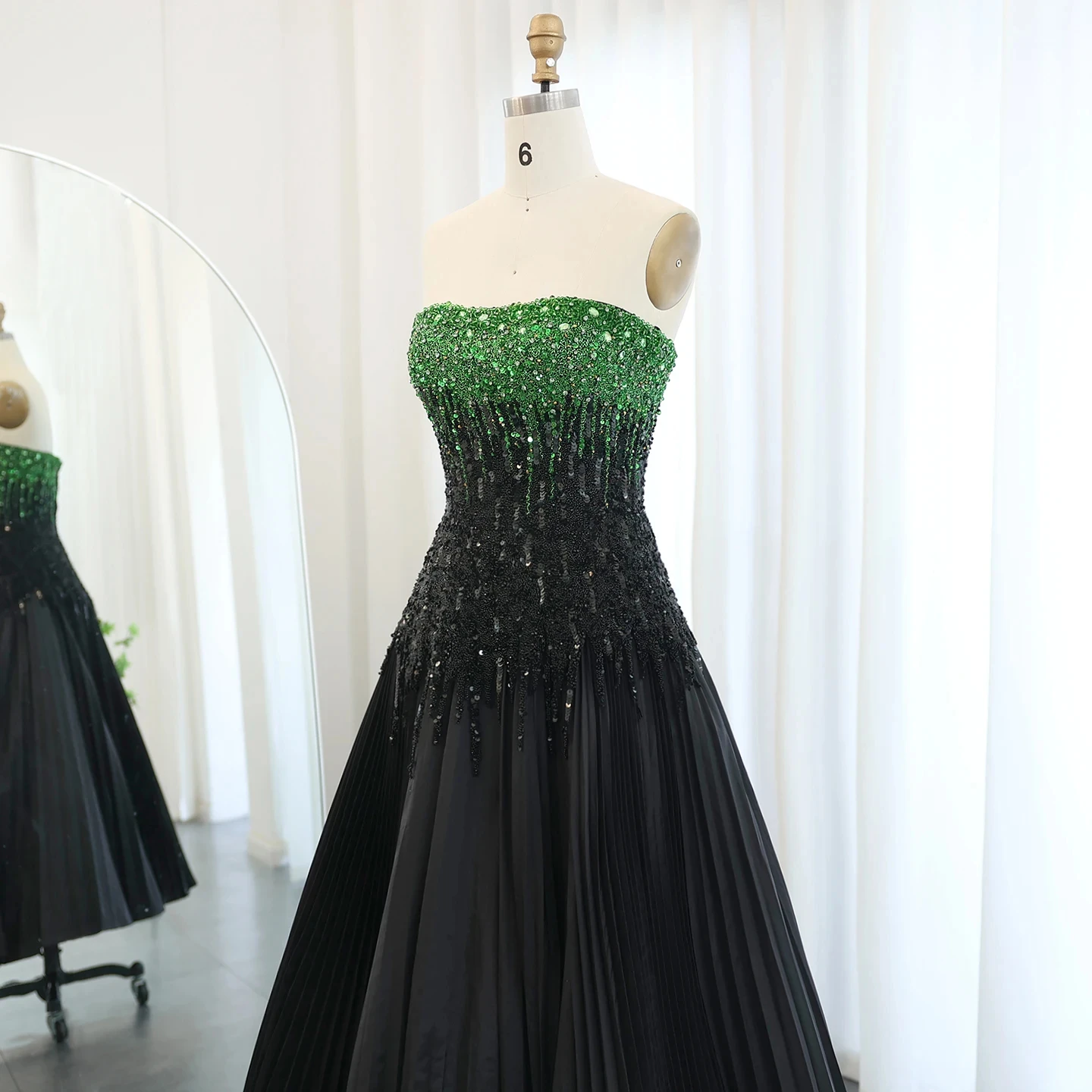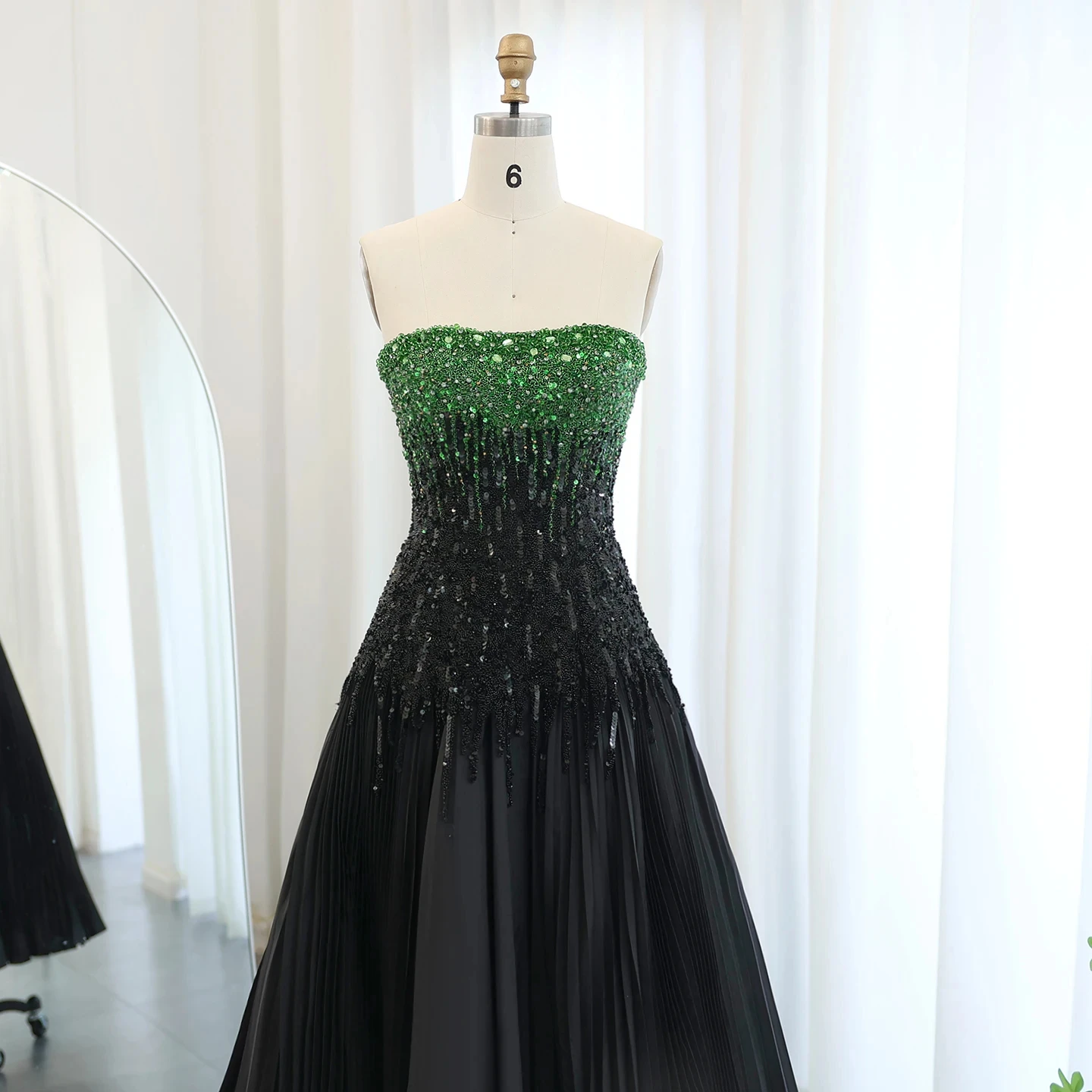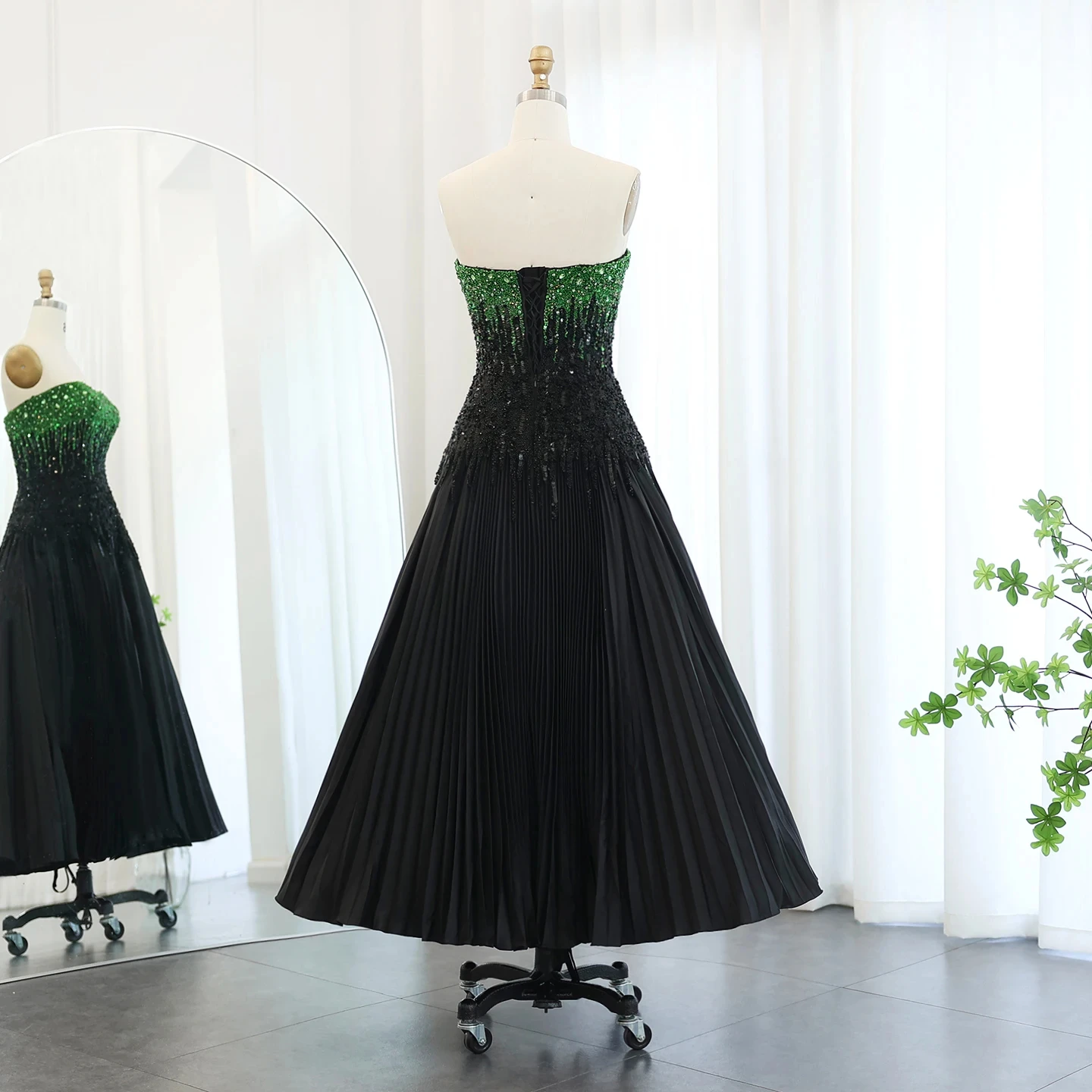 Luxury Beaded Black Green Strapless Dubai Evening Dress For Women Wedding 2024 Elegant Midi Formal Party Gowns Sz224