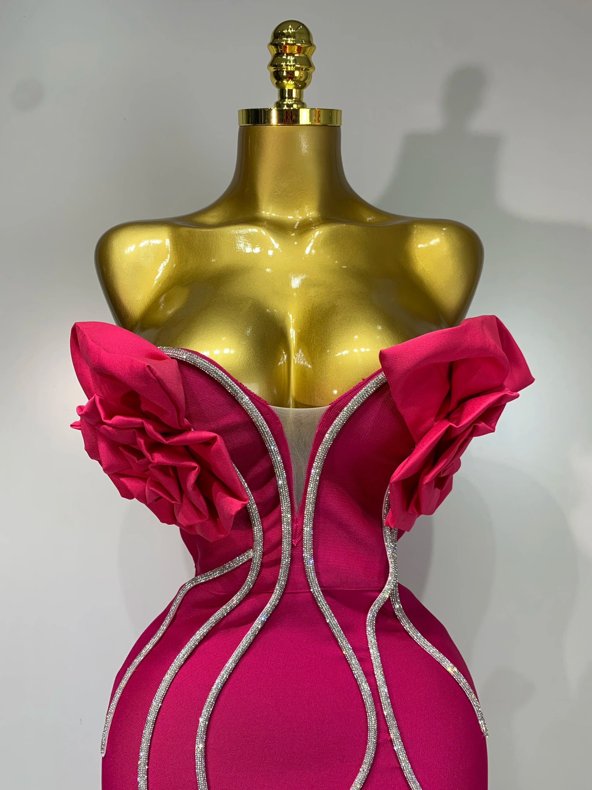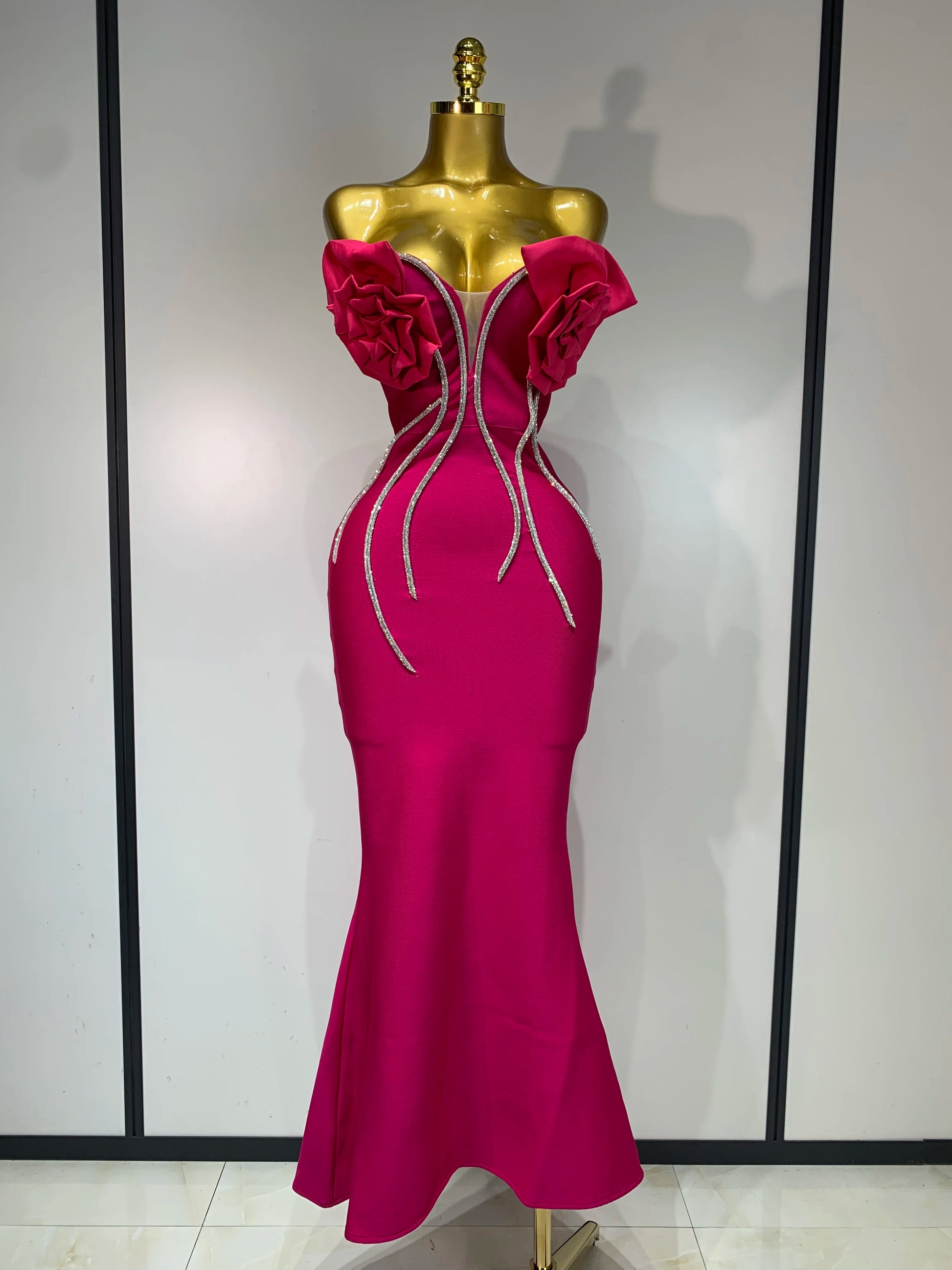 Luxury Birthday Party Dresses Women Elegant Bandage Bodycon Dress Strapless Appliques Sparkly Diamond Evening Club Outfit