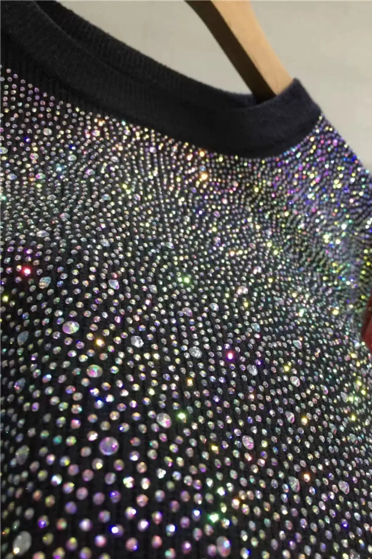 Luxury Blingbling Diamonds Autumn Winter Sim Black Sweaters Women's Long Sleeve High Street Y2K Knitted Pullover Clothes