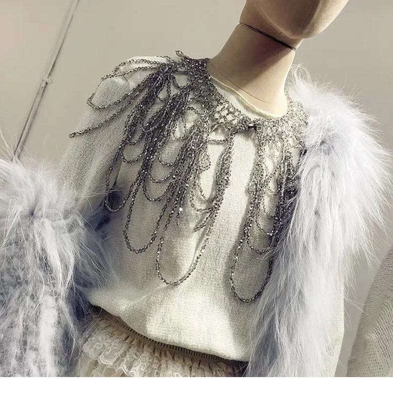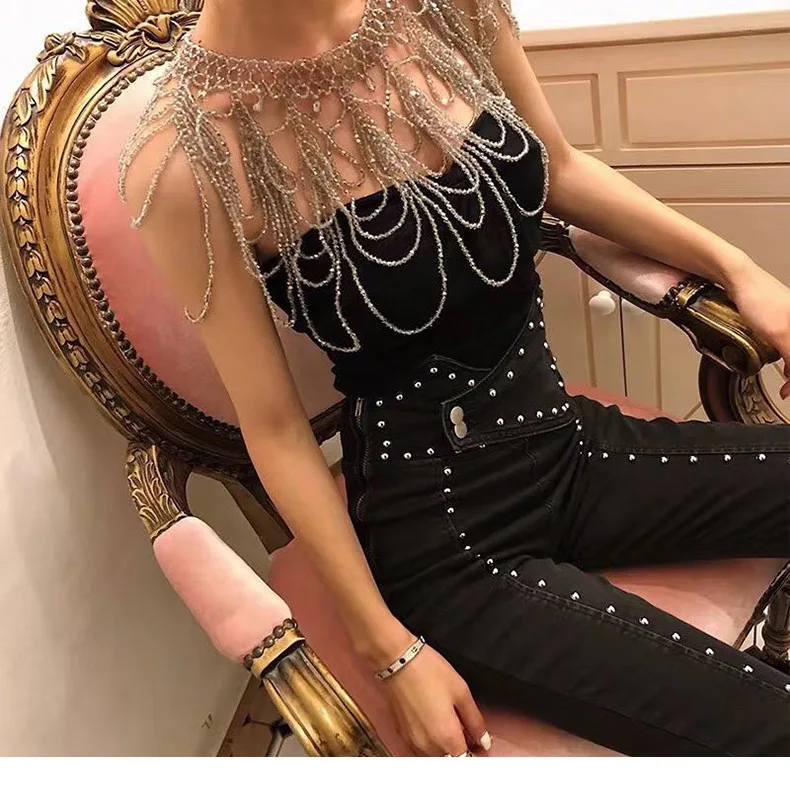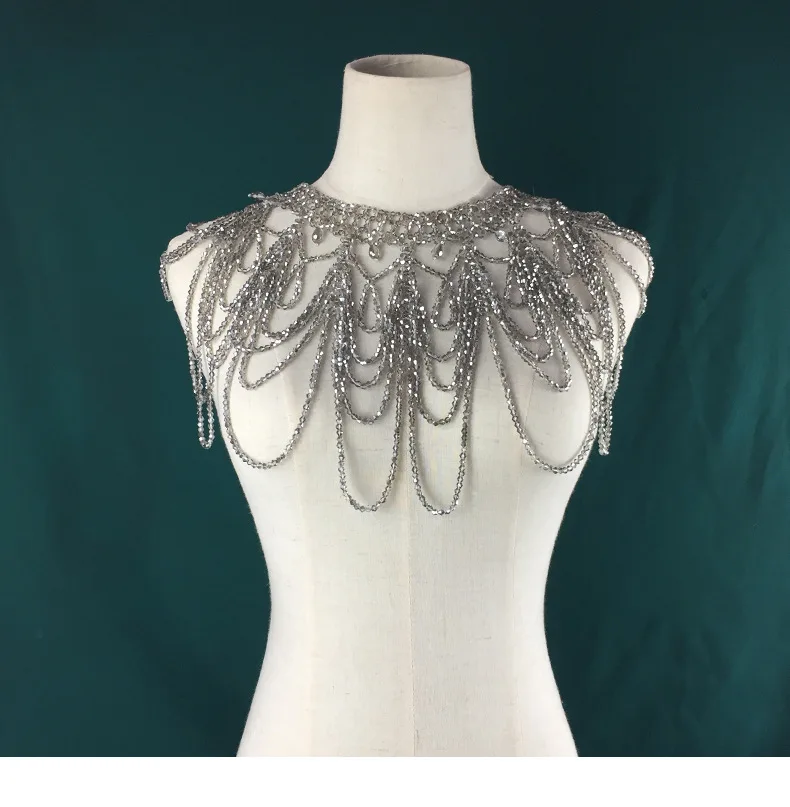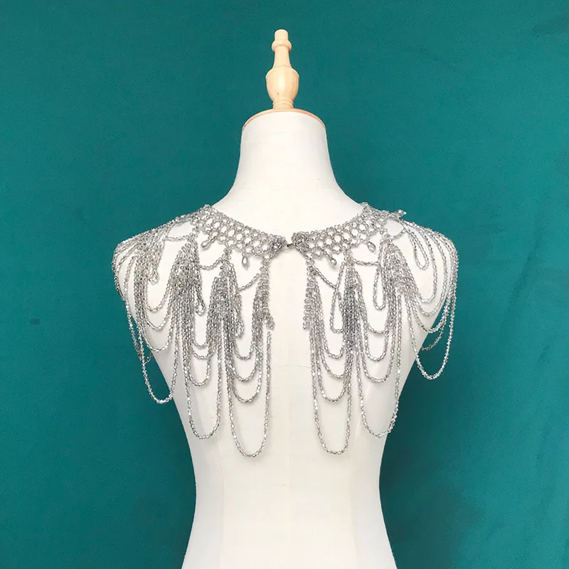 Luxury Body Jewelry Tassel Wedding Bridal Elegant Shoulder Chain Necklace Gray Crystal Shawl Jewelry Summer Body Chain Jewelry