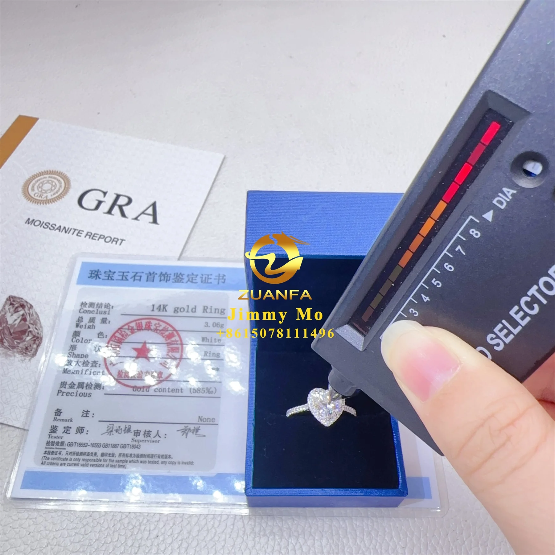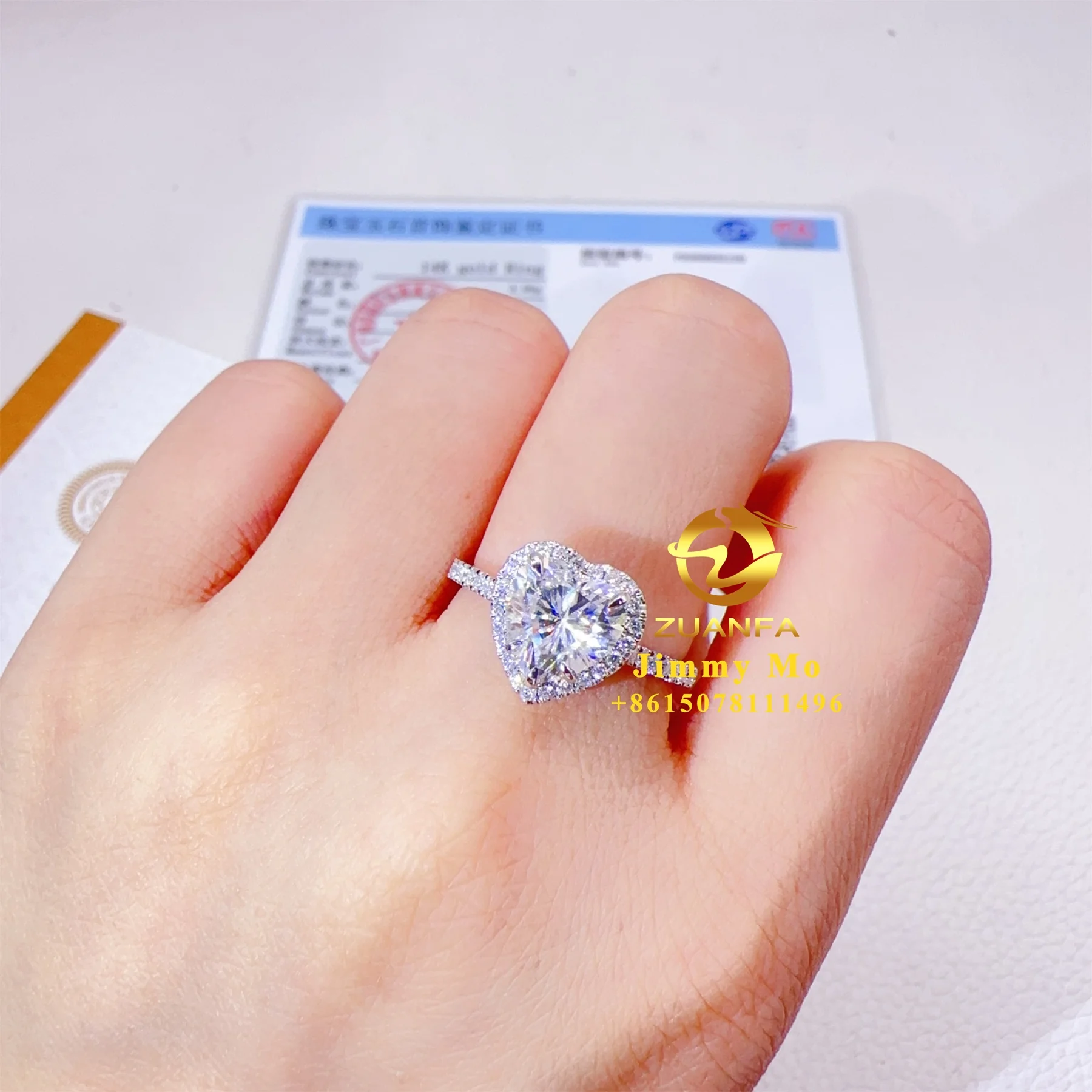 Luxury Bridal Jewelry Elegant 14k Solid White Gold 2Ct Heart VVS Moissanite Diamond Women Engagement Band Ring