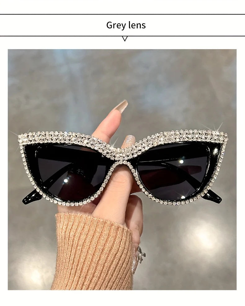 Luxury Cat Eye fashion fashion glasses for men and women glittering green stone club party favorite decorative glasses