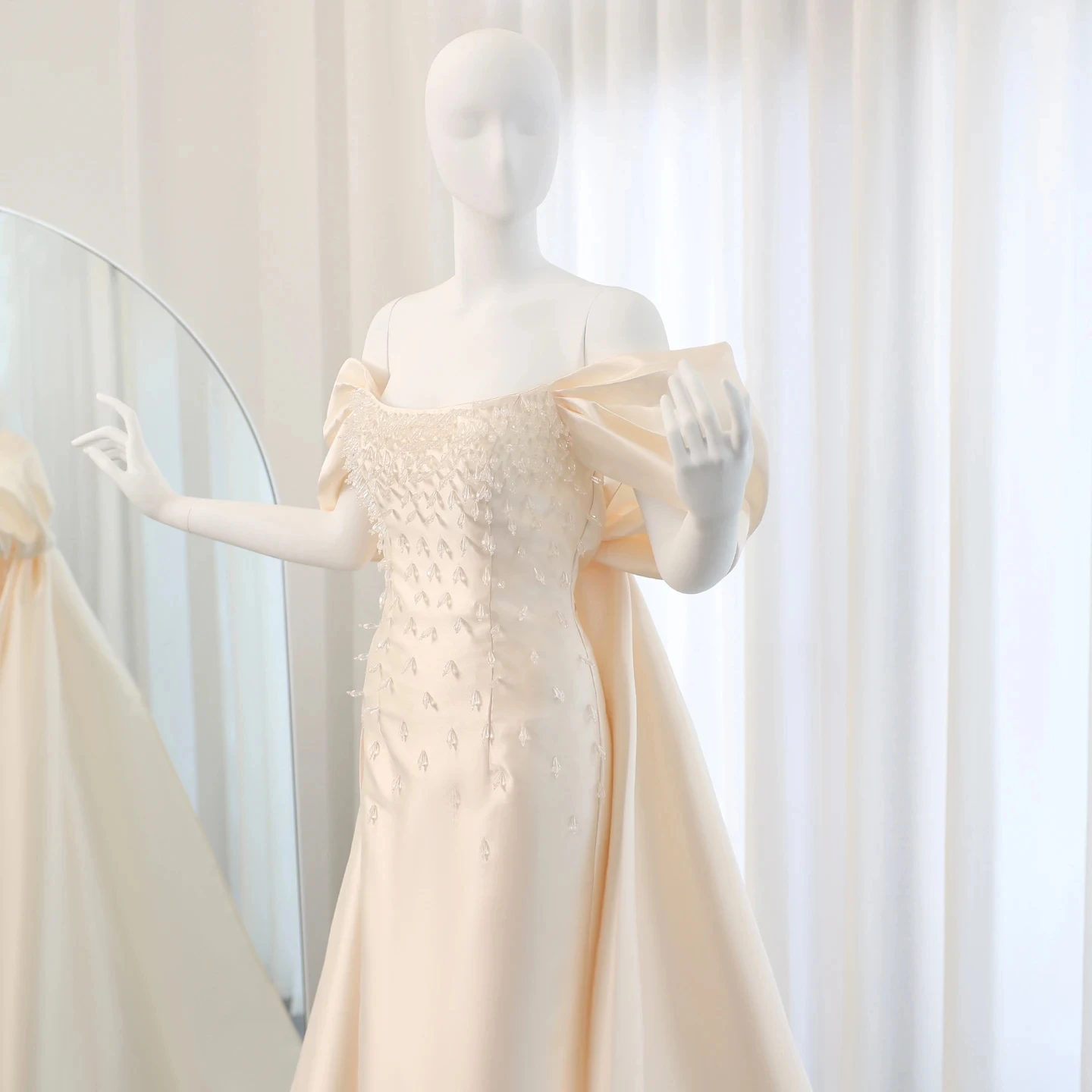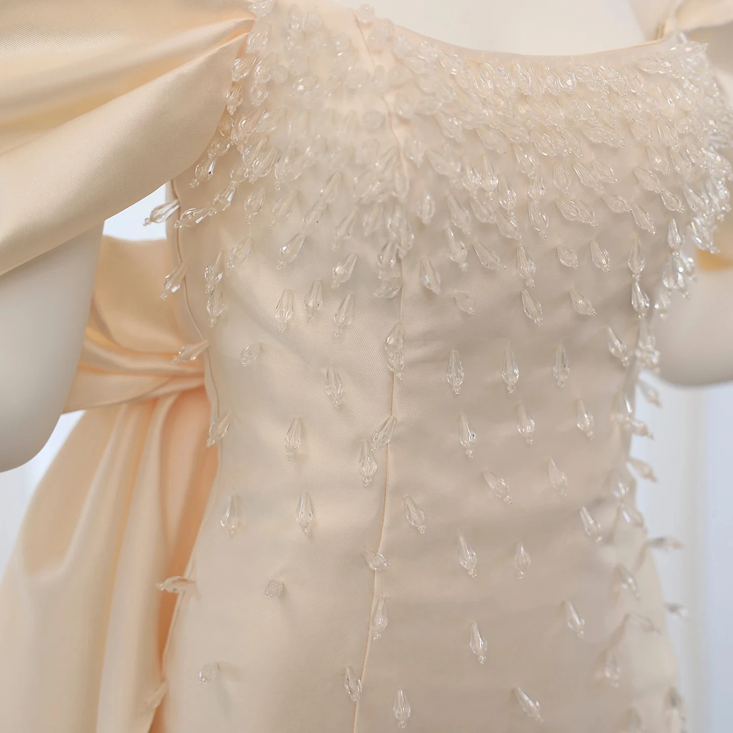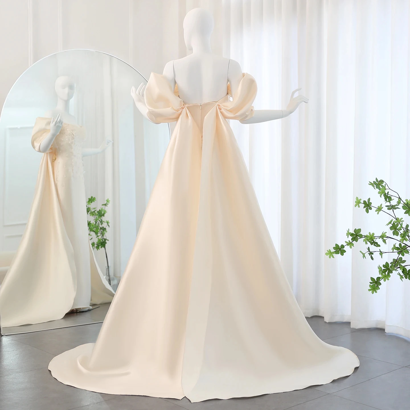 Luxury Crystal Beige Dubai Evening Dresses with Cape Sleeves Overskirt Arabic Women Wedding Formal Party Gowns SZ426