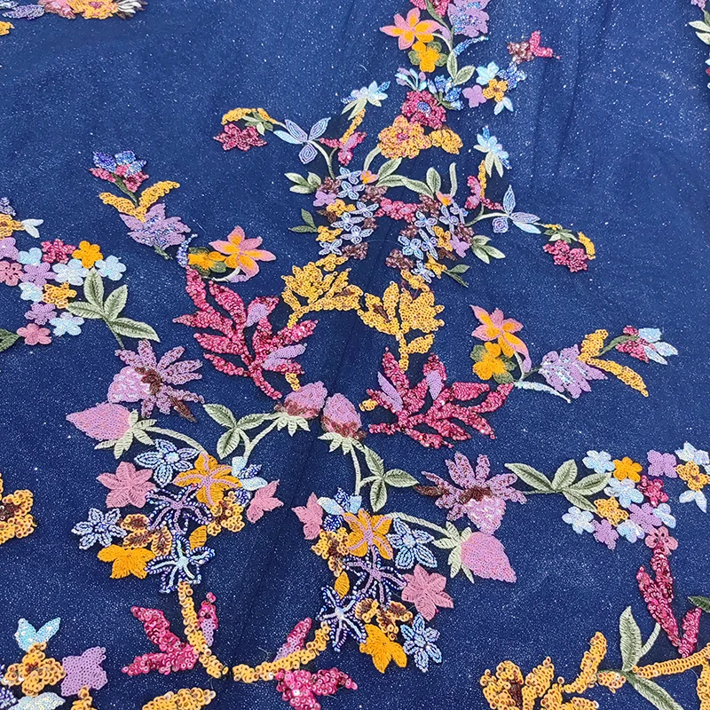 Luxury Dark Blue Flower Ball Gown Quinceaneara Dresses With Long Tail Jancember 9945-B