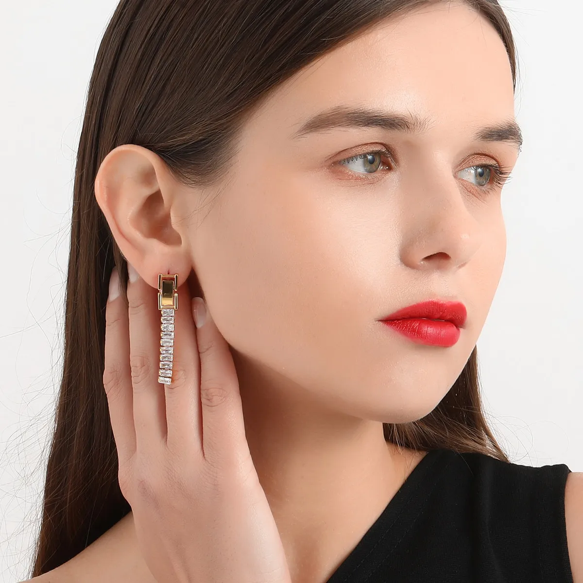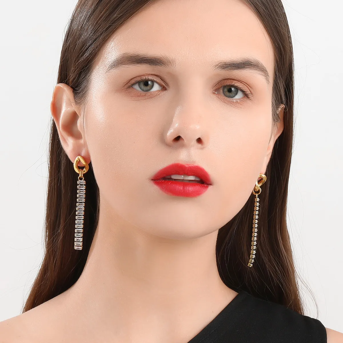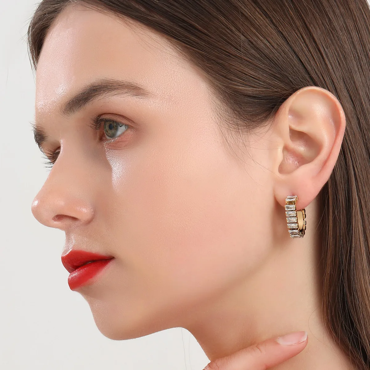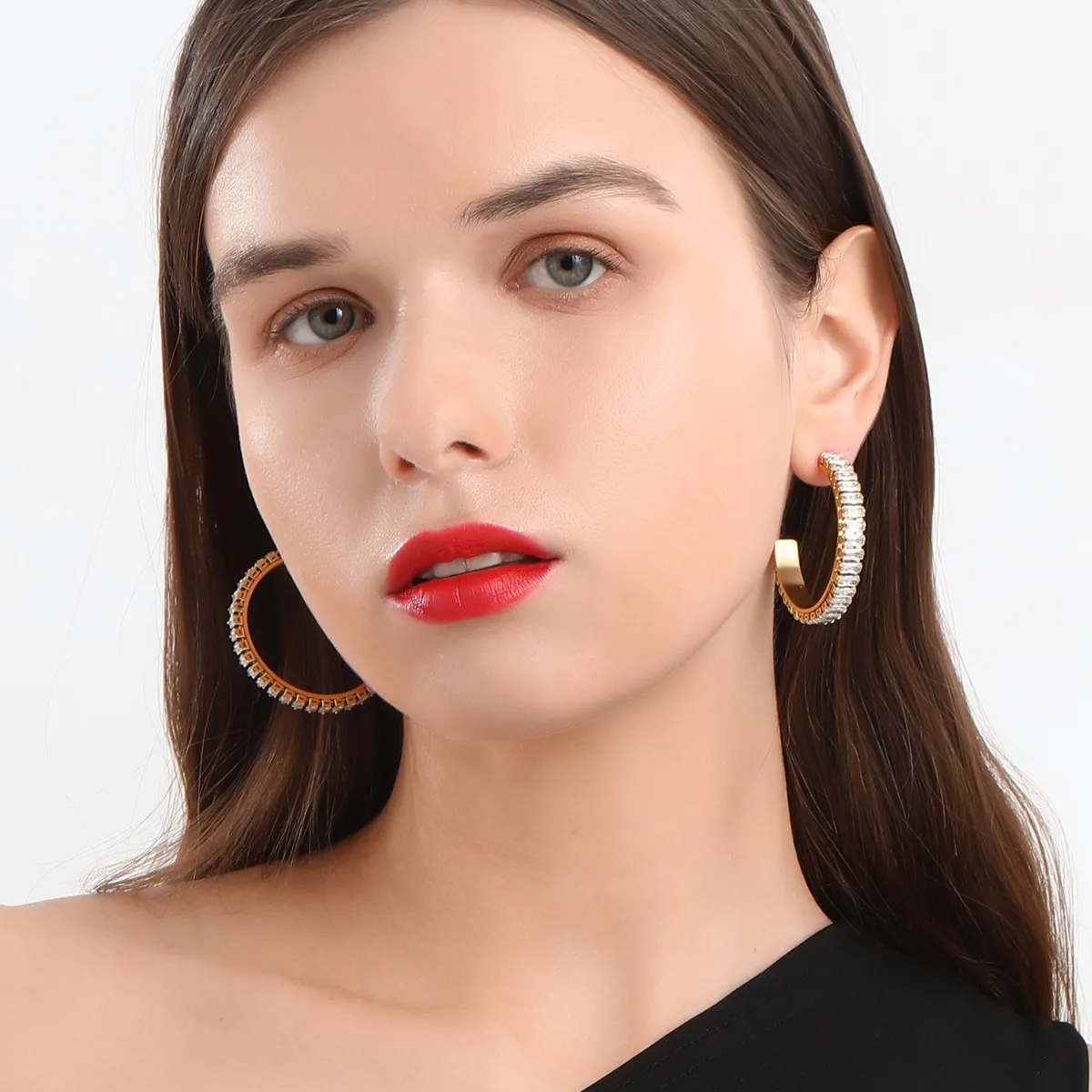 Luxury Diamond Earring Jewelry Set Women 18K Gold Plated Stainless Steel Zircon Drop Hoop Big Circle Huggies Statement Earrings